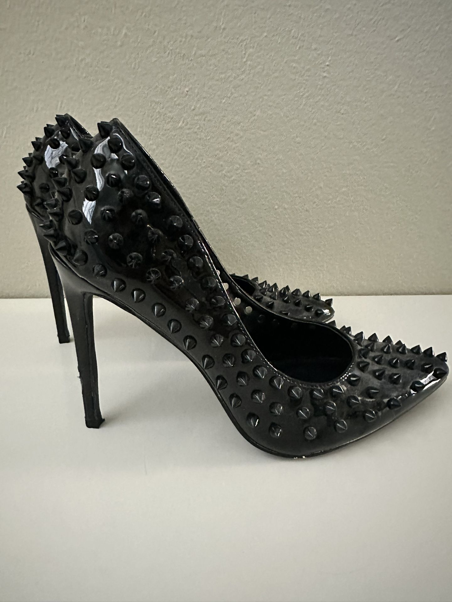 Sexy Punk Elegant Classic Spike Stiletto High Heeled Pumps Black - Size 6 - small ding in the heel