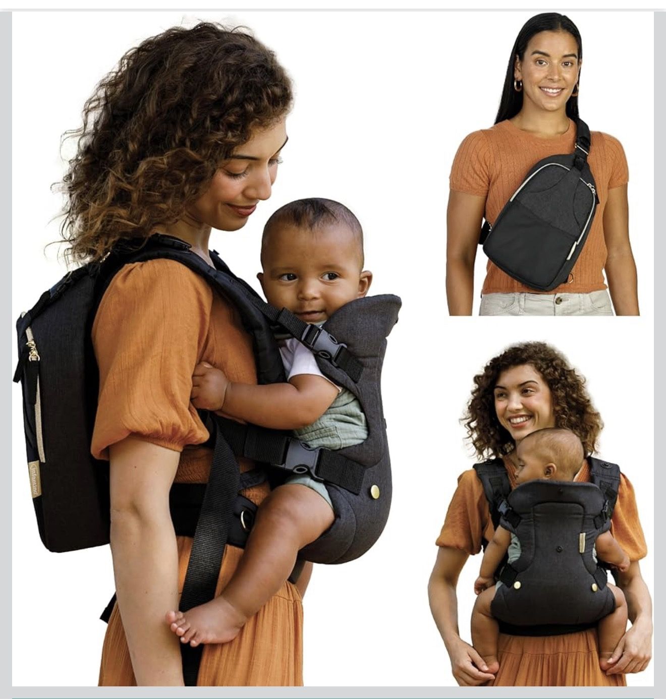 The Infantino Flip 4-in-1 Convertible Baby Carrier & Crossbody Diaper Bag - Grow-with-Me Carrier with Attachable Crossbody Diaper Bag, Black and Gold,