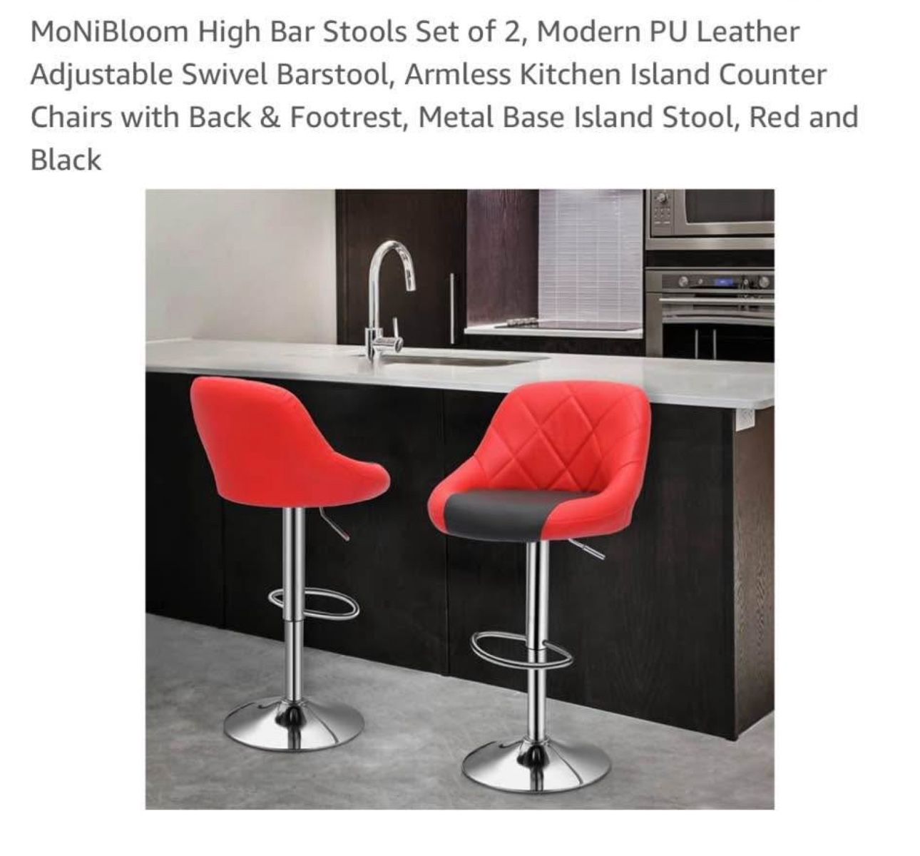 MoNiBloom High Bar Stools Set of 2, Modern PU Leather Adjustable Swivel Barstool, Armless Kitchen Is