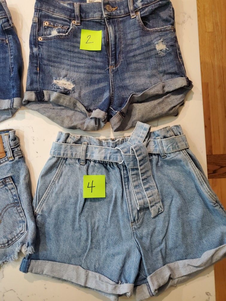 #1 - Hollister/Size 0, #2 - Garage/Size 0, #3 - Levi/Size 25, #4 - Garage/Size 3. Sold together.