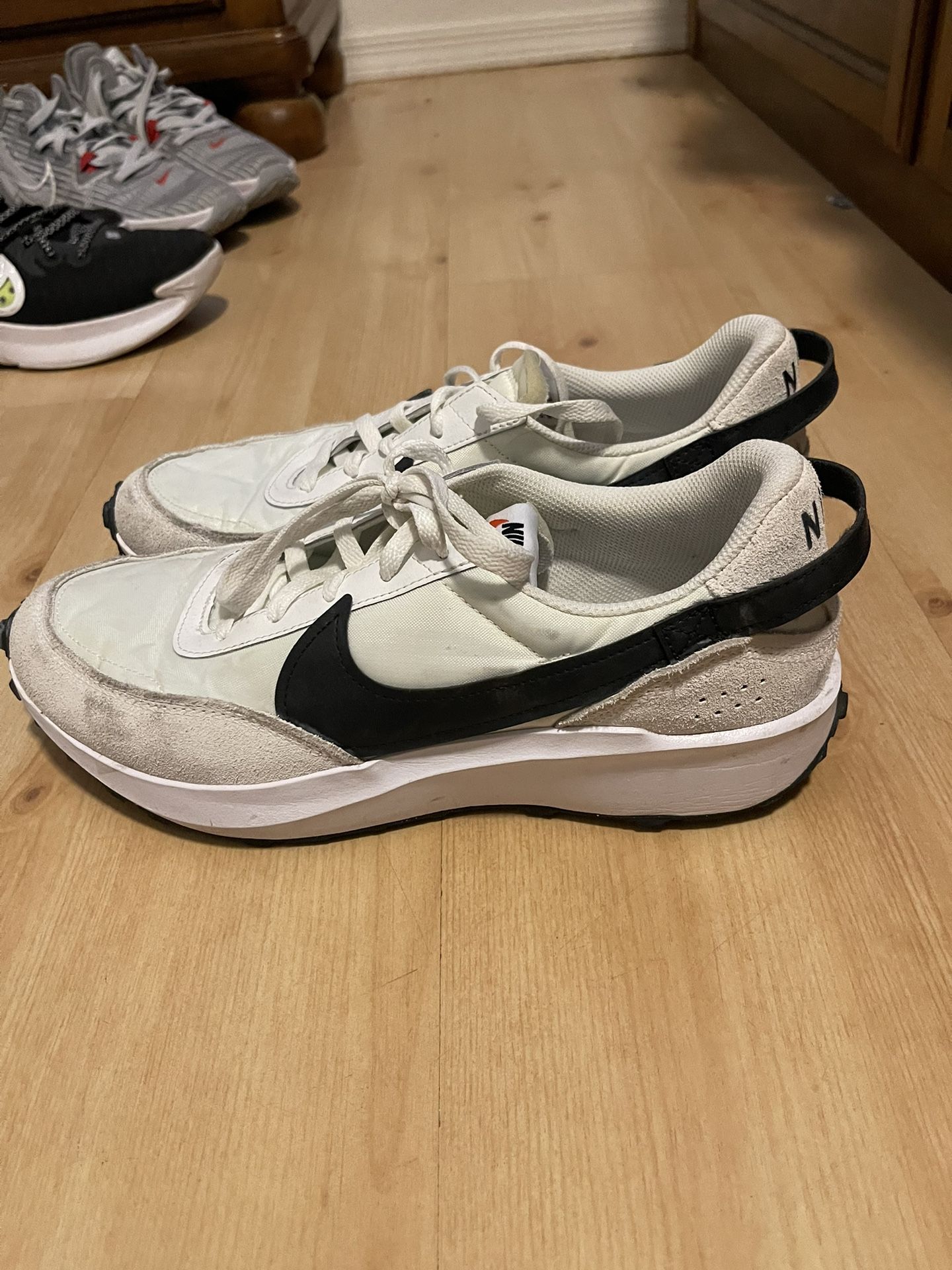 All in great used condition. My son wore all maybe 3 times and has now outgrown. Tan and black nike waffles-10.5 $15 Gray Vans 9 $15 White and red nikes 9.5 $15 Black and white Giannis 10 $20 Black and white Lebrons 10.5 $20 Gray and red nikes 9 $15 Black and white Nike frees 9 $15