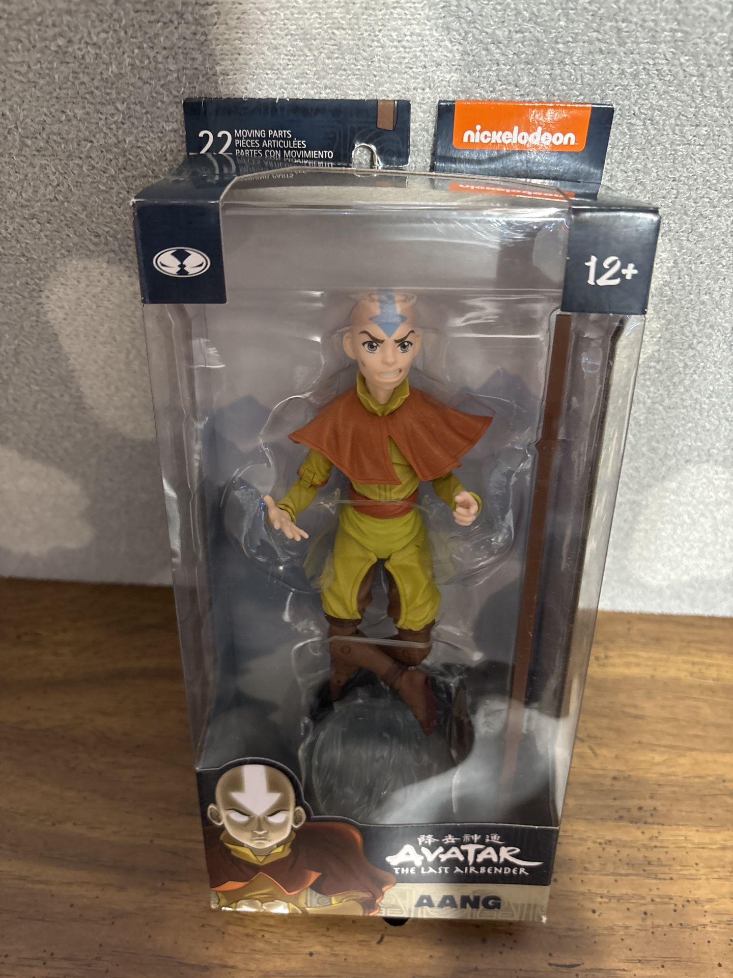 Selling a brand new, never opened Aang action figure from Avatar: The Last Airbender. The figure inside is untouched and in perfect condition, featuring 22 moving parts for posing and display. The box has minor damage (light creases and bends on the top and edges), but nothing that affects the figure itself. Perfect for Avatar fans, collectors, or anyone wanting to add the Avatar himself to their display shelf! Please review photos for exact box condition.