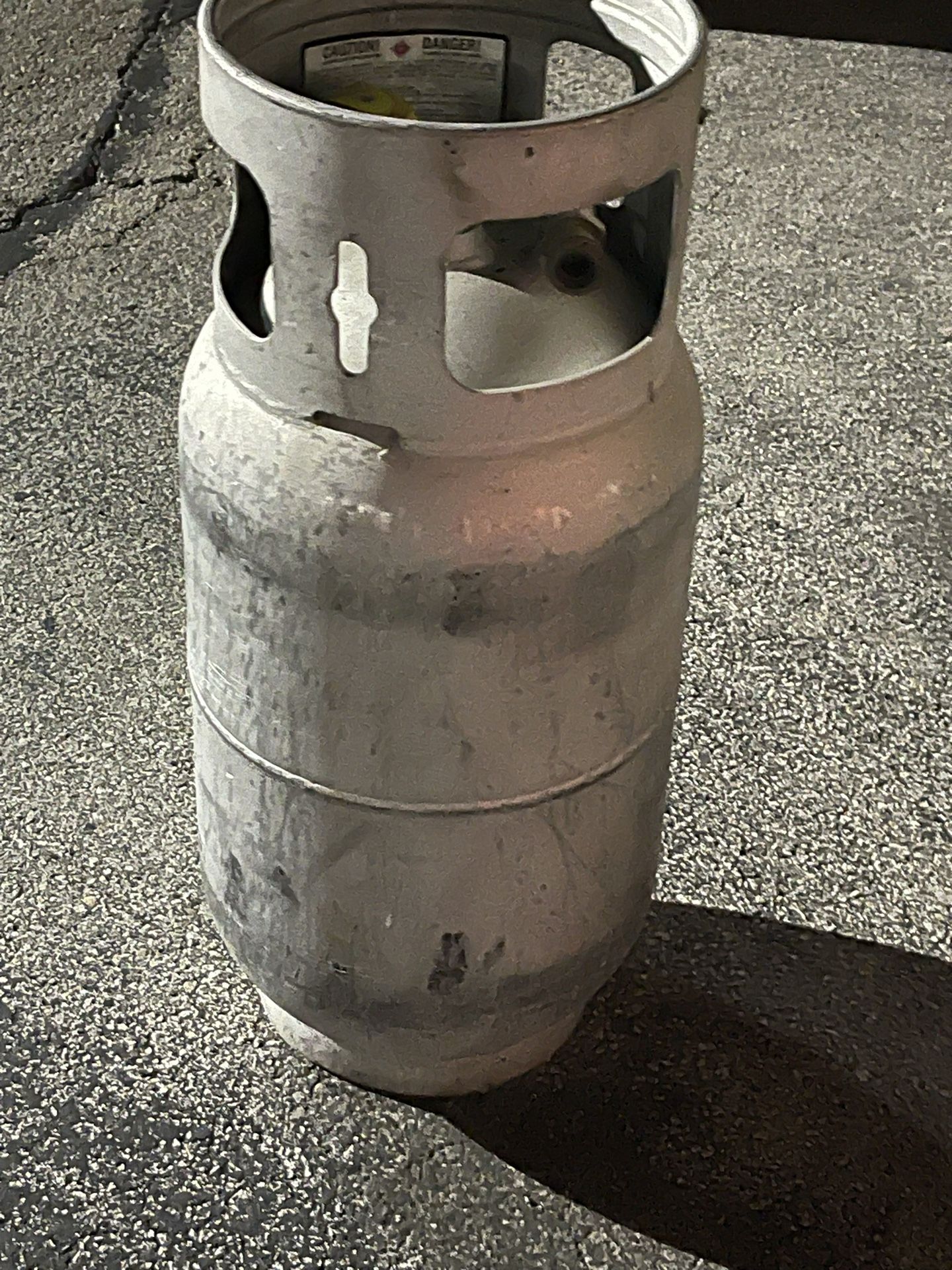 The tank shows that it’s empty. Any questions let me know Near nacogdoches and occoner $50 or trade for regular propane tank