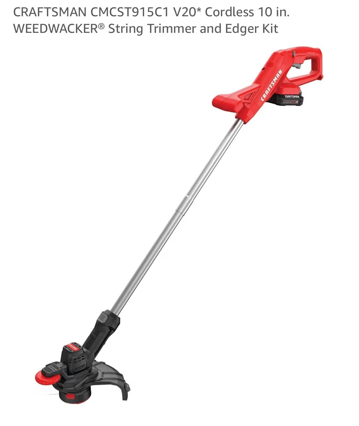 Brand new cordless CRAFTSMAN CMCST915C1 V20* Cordless 10 in. WEEDWACKER® String Trimmer and Edger Kit with 20v 1.5Ah battery and charger. Sells for $107+ tax and delivery on Amazon Asking $65