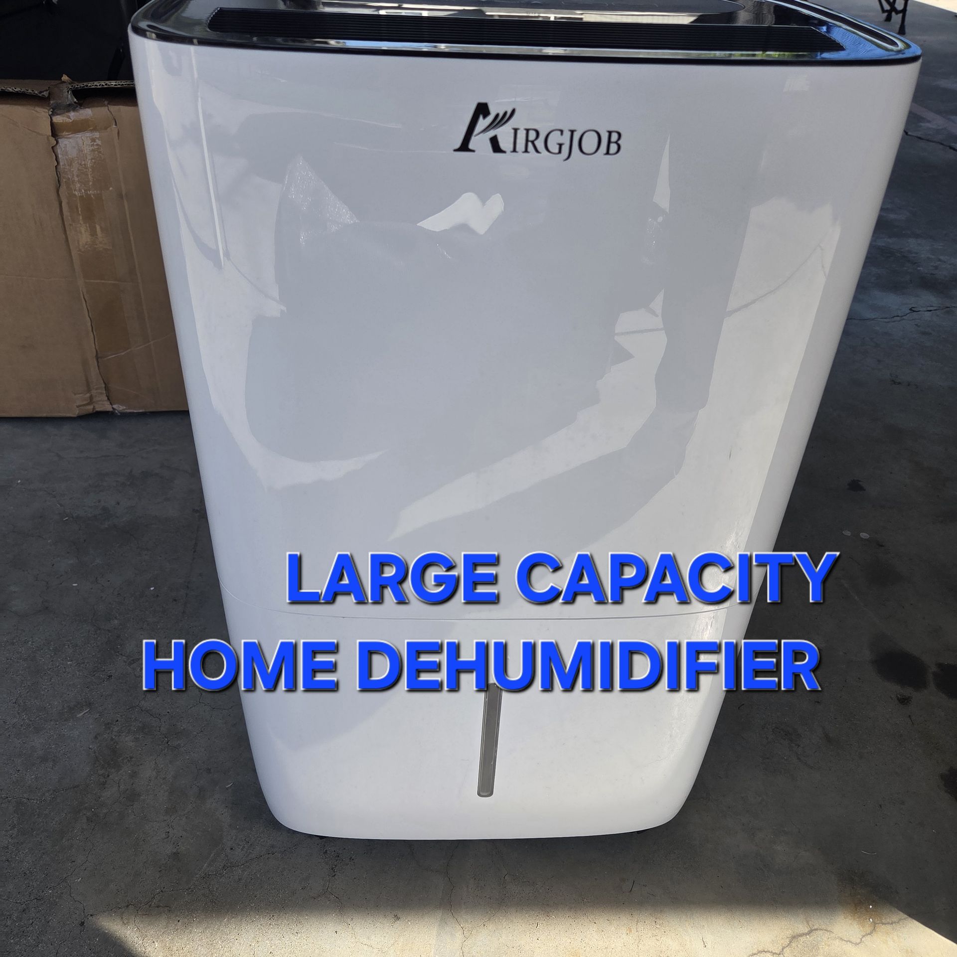 Perfect condition works great. I can plug in so you test. Used a few times still have original box. Cash only please The Airgjob D026DJ-50PT is an Energy Star-certified 50-pint (70-pint old standard) dehumidifier designed for large spaces up to 4,500 sq ft. It features electronic controls, an adjustable humidistat (30%-80%), 24-hour timer, and includes an option for continuous drainage with a hose, alongside a removable water tank with auto-shutoff. Key Features and Specifications: Capacity: Removes up to 50 pints of moisture per day. Coverage: Suitable for large rooms or basements up to 4,500 sq ft. Modes: Features specific settings for basement, living area, and sleeping area, plus a continuous mode. Design: Equipped with 360° castor wheels and side handles for portability. Durability: Features an auto-defrost function and an automatic 8-minute stop/start cycle every 8 hours for longevity. AFTER INSPECTION AND PURCHASE ALL SALES ARE FINAL
