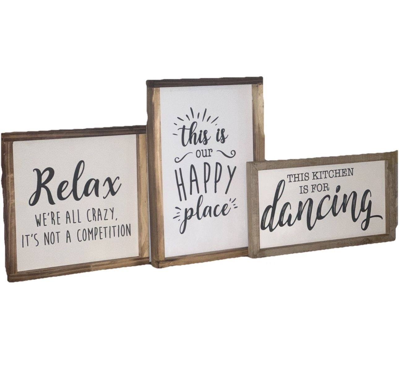 three decorative wooden signs, for kitchen or home decor
