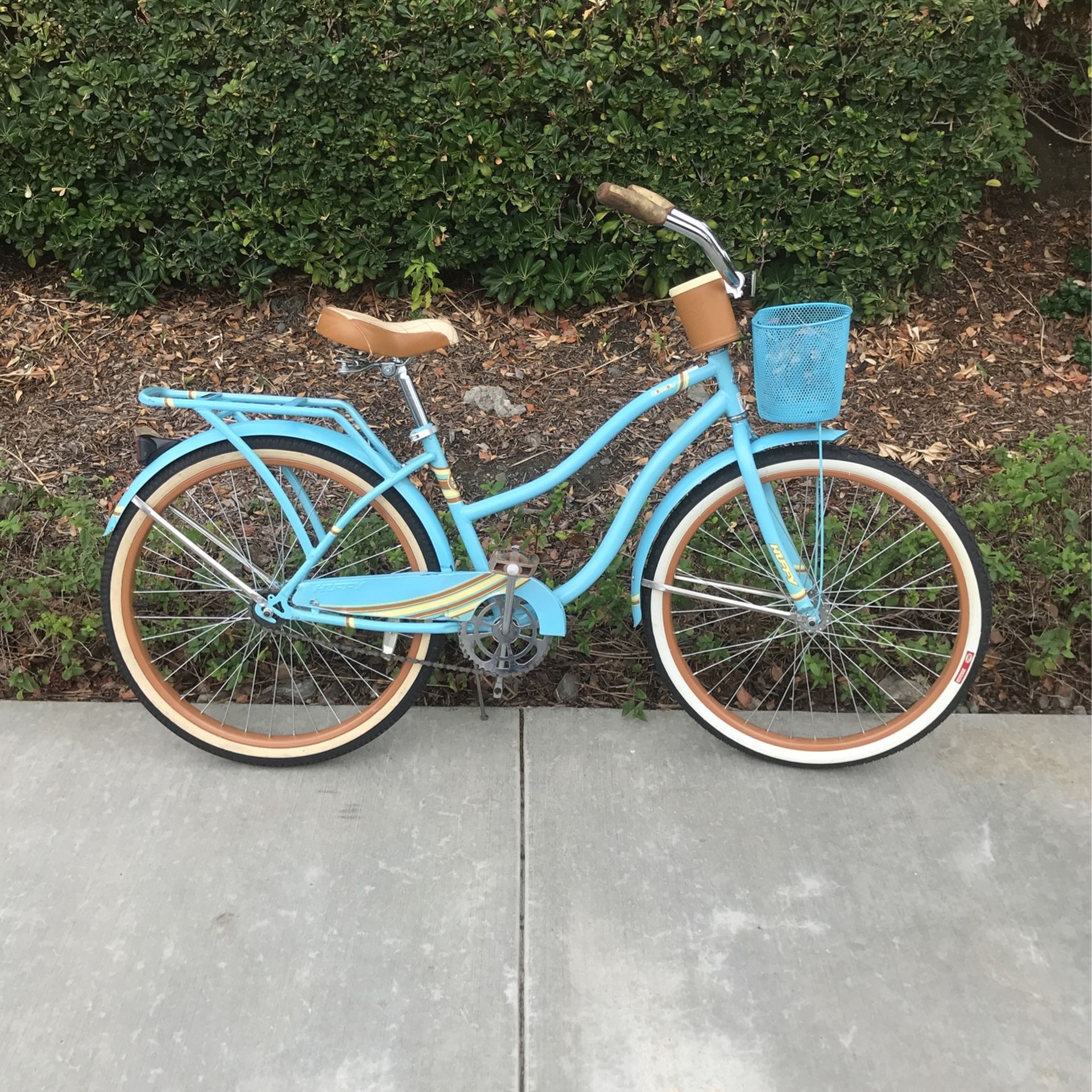 26” Huffy Nassau Ladies Light Blue Beach Cruiser with Basket, Rear Rack and Cup Holder Ready to Ride Will Deliver For an additional $25
