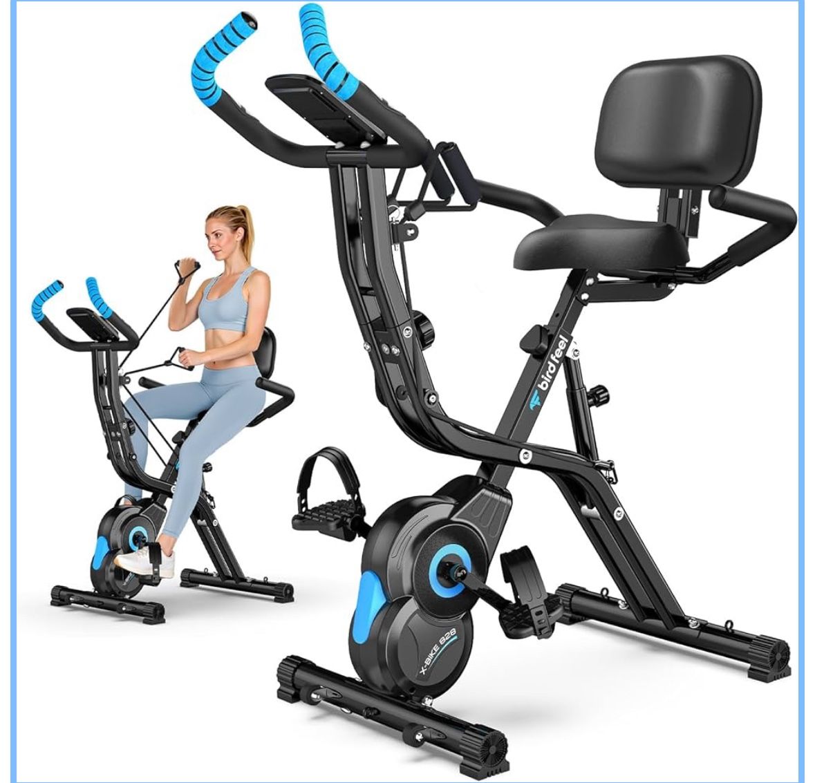Foldable Exercise Bike, Multifunctional Indoor Stationary Bikes for Home with 8-Level Magnetic Resistance, Quiet Workout Bike with Arm Resistance Bands, LCD Monitor, 300LBS Capacity (Blue)