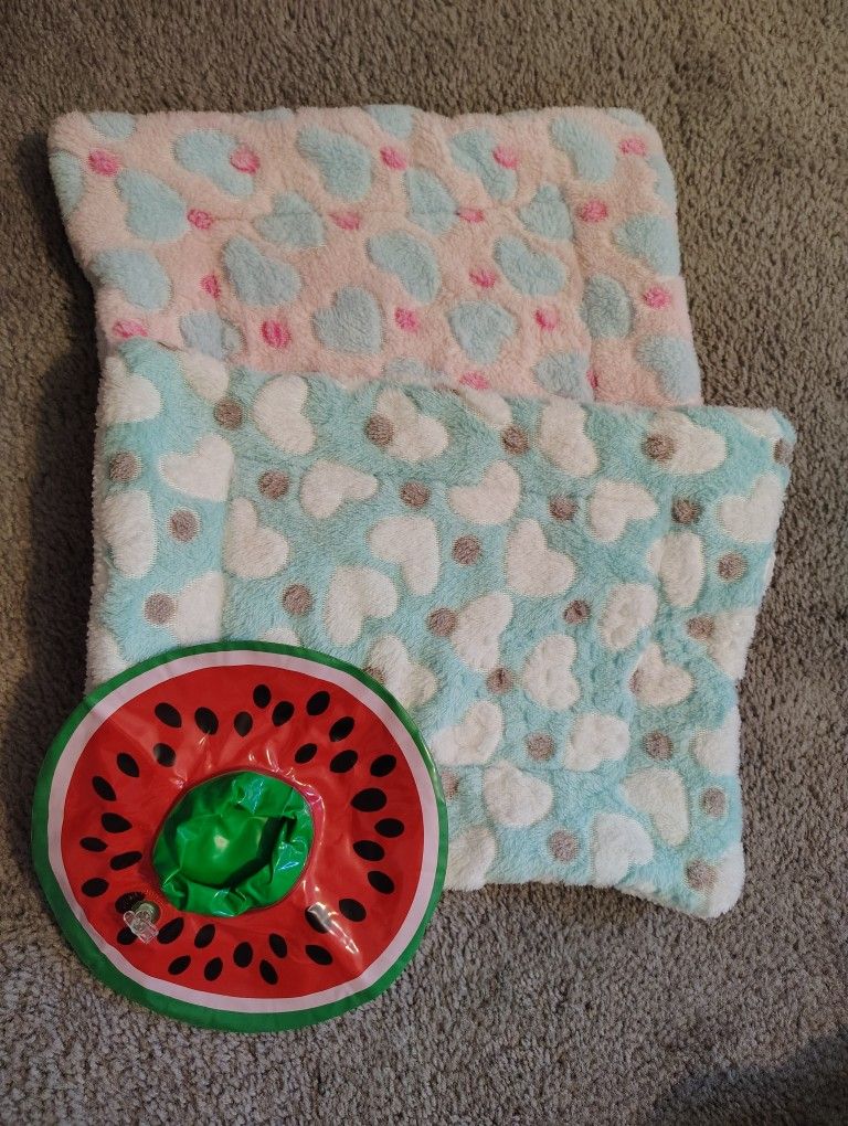 *Please do not contact me unless you are ready to pick up same or next day! Thank you! Price is Firm!* Two soft pet beds (14.9inx11.8in) and a pool float. Beds have been washed once and pool float is clean. My beardie didn't like any of it. I meet at 4009 Cedar Lane 23703. Cash Only. No holds