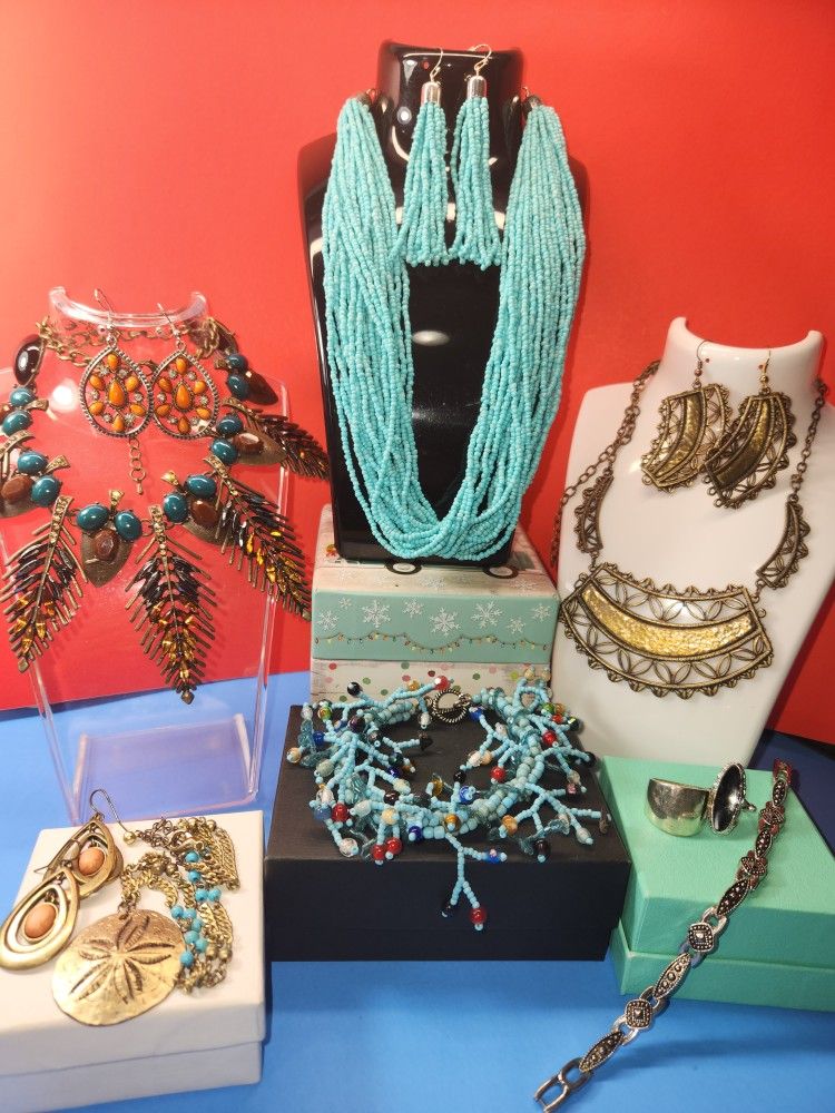 #2127, VTG LOT,, ZUNI, NAVAJO, TURQUOISE, 12 ITEMS, GORGEOUS VINTAGE JEWELRY, THIS LOT CONTAINS BRACELET AND RINGS (ALSO NECKLACE AND EARRINGS UNBRANDED, TURQUIOISE, BEANS BEADS, RHINESTONES, MARCASITE STONES. THEY ALL IN EXCELLENT CONDITION, GREAT LOT 12 ITEMS IN TOTAL.