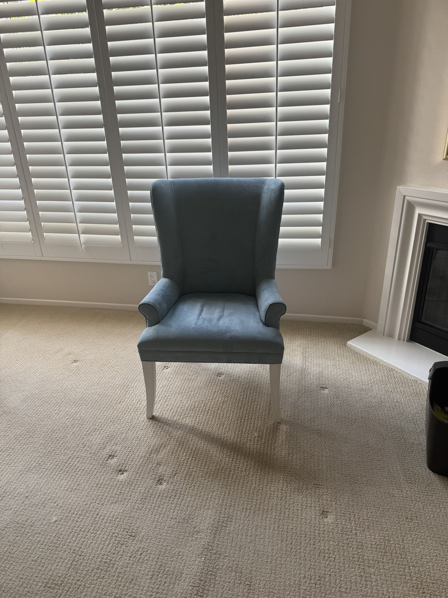 Blue microfiber suede wingback chairs. Great condition. Easy to clean fabric. $250 for both.