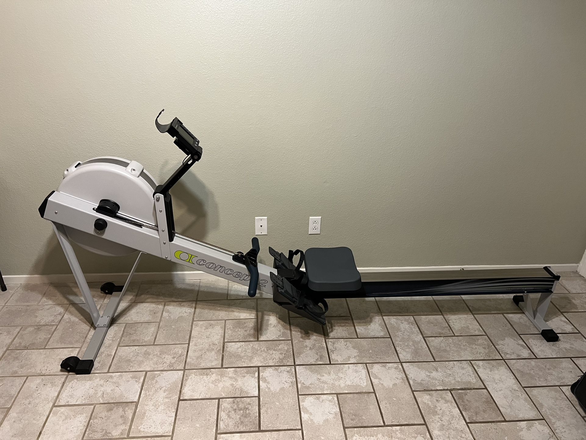 In excellent condition! All original manuals included, plus a thick seat cushion! Price is FIRM The World's Best-Selling Rowing Machine The dependable performance of the Concept2 Model D Indoor Rower has made it the best-selling rowing machine in the world for over 40 years. Used by elite athletes for competitive training, the versatile Model D fits in as well in fitness facilities and home gyms as it does in boathouses around the world. The Model D fits your goals and your budget, offering a low-impact exercise accessible to anyone of any age. For over forty years, Concept2 has been designing and manufacturing innovative, high-quality products out of Morrisville, Vermont. Included with your Purchase: Performance Monitor 5 computer, Model D User Manual, Performance Monitor Quick Start Guide, tools and illustrated assembly instructions. Trust Your Workout Data - Measure your progress with reliable, comparable data on every stroke. - Workout options include time, distance and intervals. - Easy on your eyes with backlit LCD display. - Wireless Bluetooth and ANT+ compatibility for heart rate monitoring or apps. - Save workouts to a USB flash drive (not included). - Games included, and more. Control Your Workout Intensity - Air-resistance flywheel responds to every stroke. - Control the air flow with an easy change of the damper. - Damper levels 1-10. - Minimal noise. - Smooth feel. Easy to Assemble, Move and Store - Easy to assemble with only 8 screws. - Rolls smoothly on caster wheels while fully assembled. - Separates into two pieces for storage. - Releases quickly without tools using a framelock mechanism. - Stored dimensions: 25 in x 33 in x 54 in (63.5 cm x 83.8 cm x 137.2 cm). Stay Motivated - Connects with a wide range of popular fitness apps. - Free ErgData app records and stores workouts on your smartphone. - Sign up for Concept2’s Workout Of the Day (WOD) emails. - Join an Online Challenge.- Online rankings allow you to compare yourself against others.