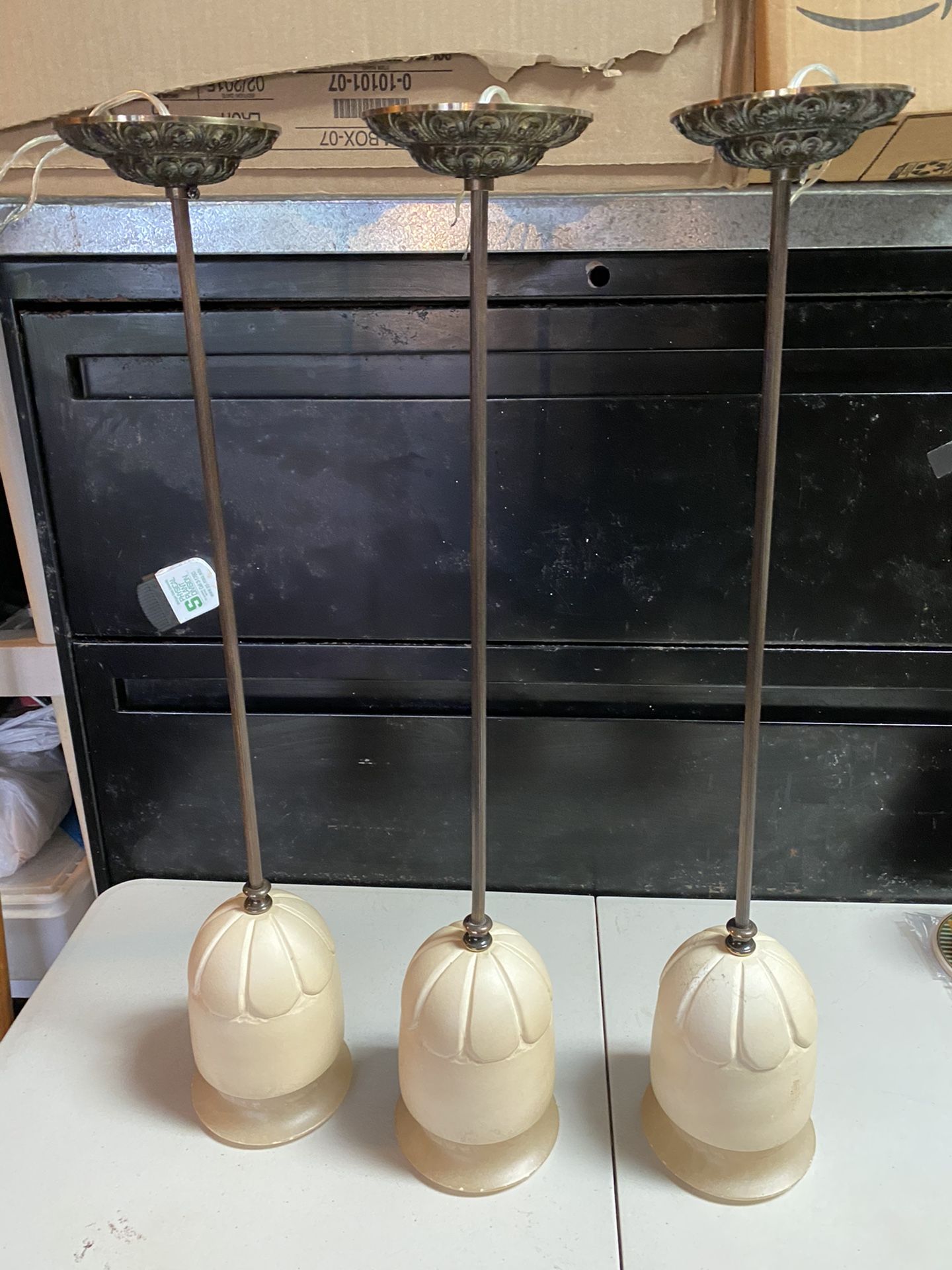Three beautiful alabaster and bronze from Spain pendants lamps. Or bar lamps.