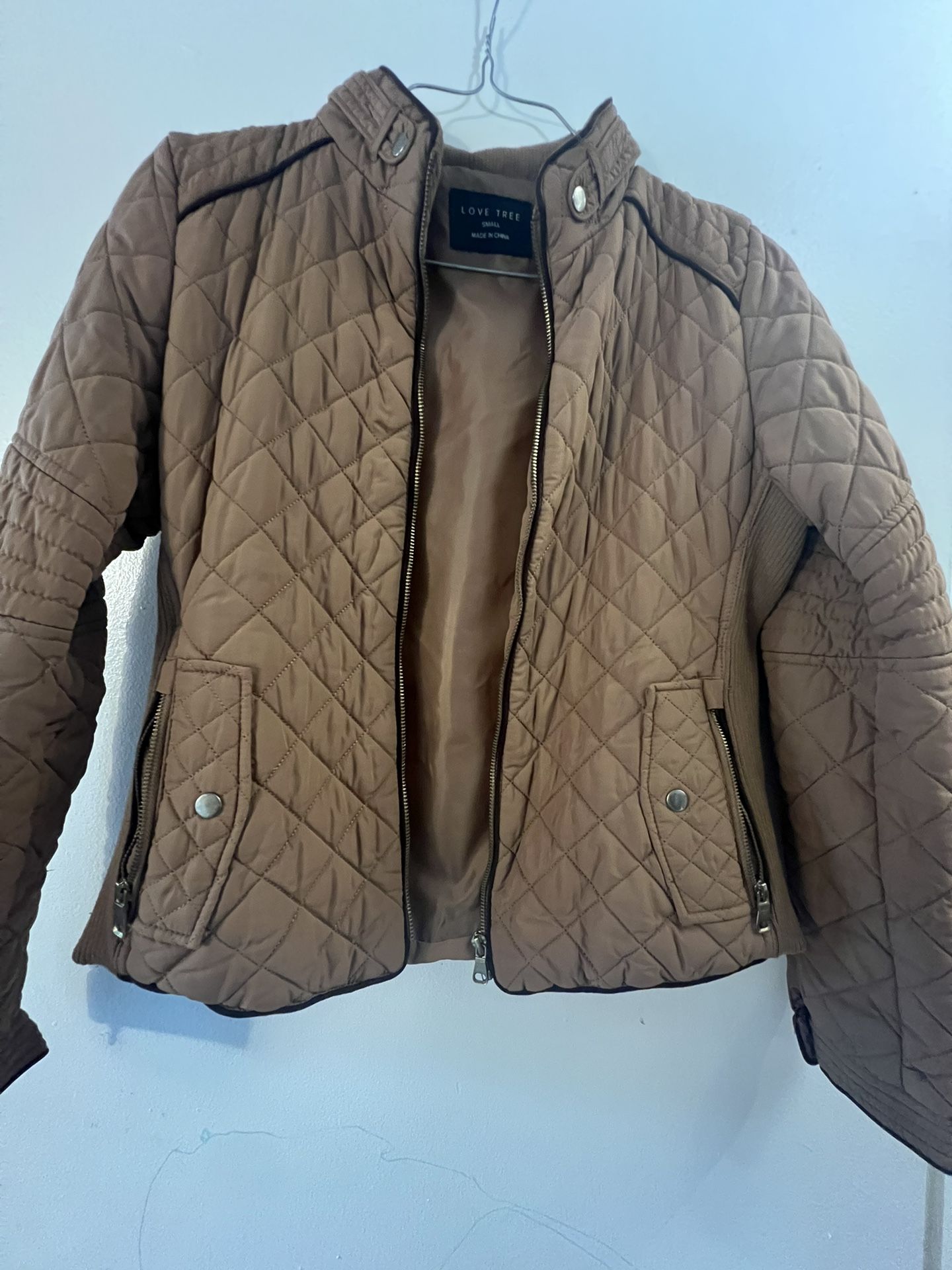 Love Tree Diamond Quilted Jacket Women’ Brown Full Zip Lined Pockets Size S
