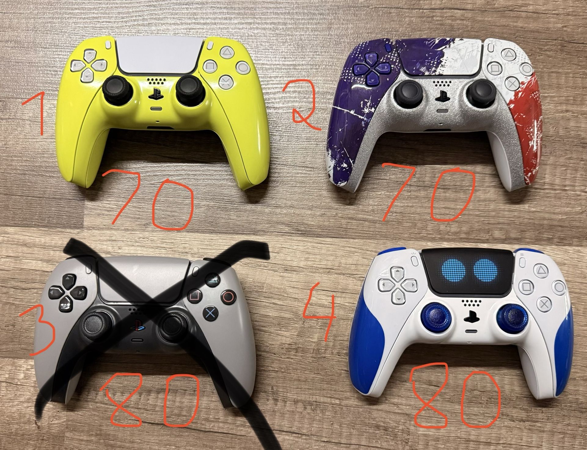 Christmas sale!! Customized PS5 controllers with recently upgraded TMR joysticks to prevent stick drift( no more stick drift ever). Longer battery life cause new sticks uses less energy. All controllers have been cleaned, calibrated, upgraded with the latest firmware. Choose one, price $70-80 each. Ask which one. I do this as a hobby and it takes time to customize and upgrade sticks so please no crazy lowballers who wants almost for free. Respect please. Thanks