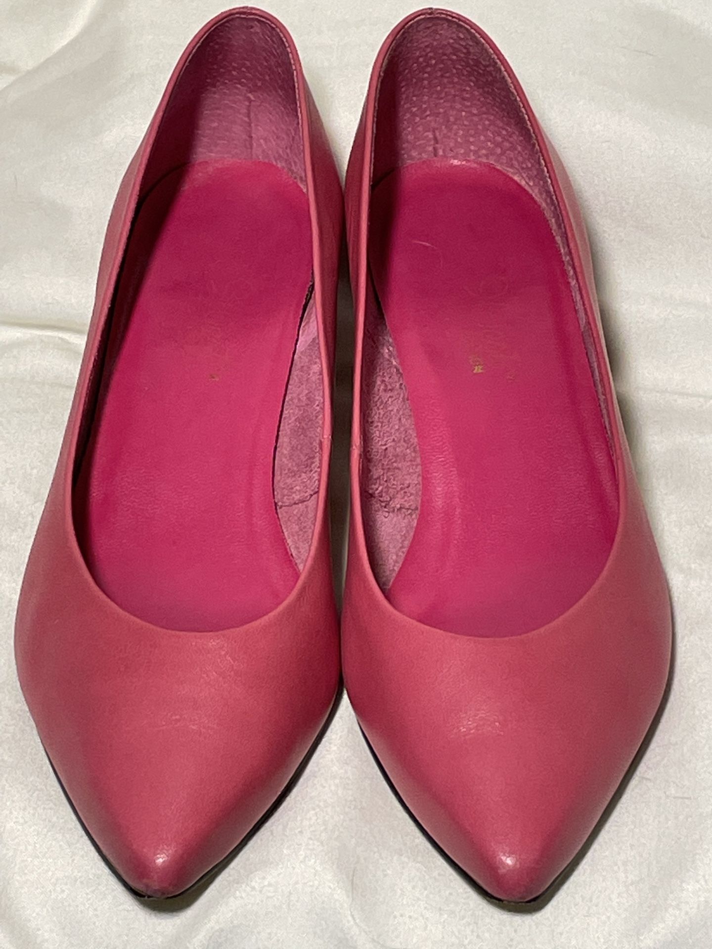 Pink kitten heel pumps ladies size seven. Leather upper. Location near Greenway Road and 40th Street Phoenix Arizona. Firm on price!