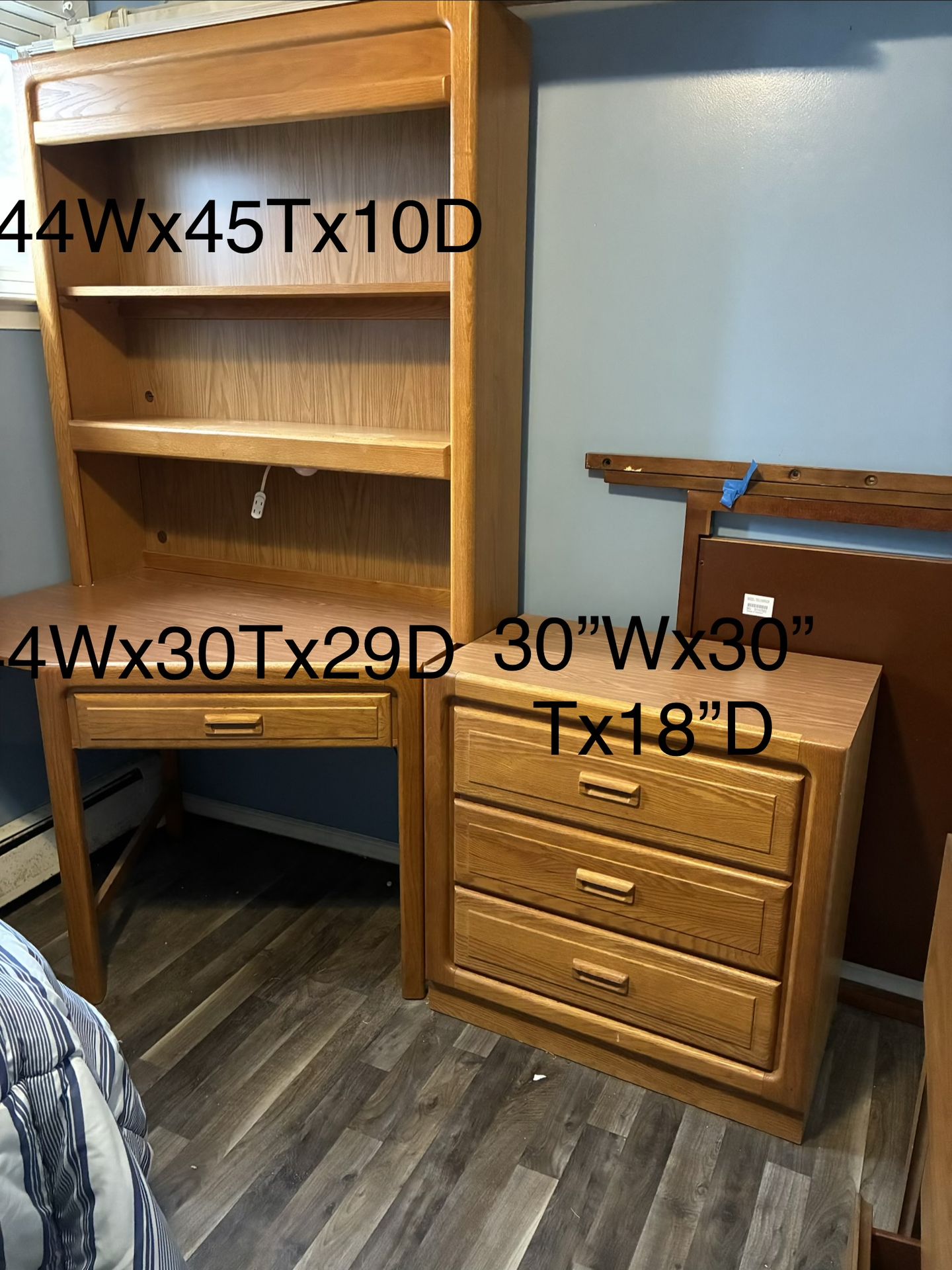 Good condition- normal wear as pictured with dimensions, 99$ for the set.