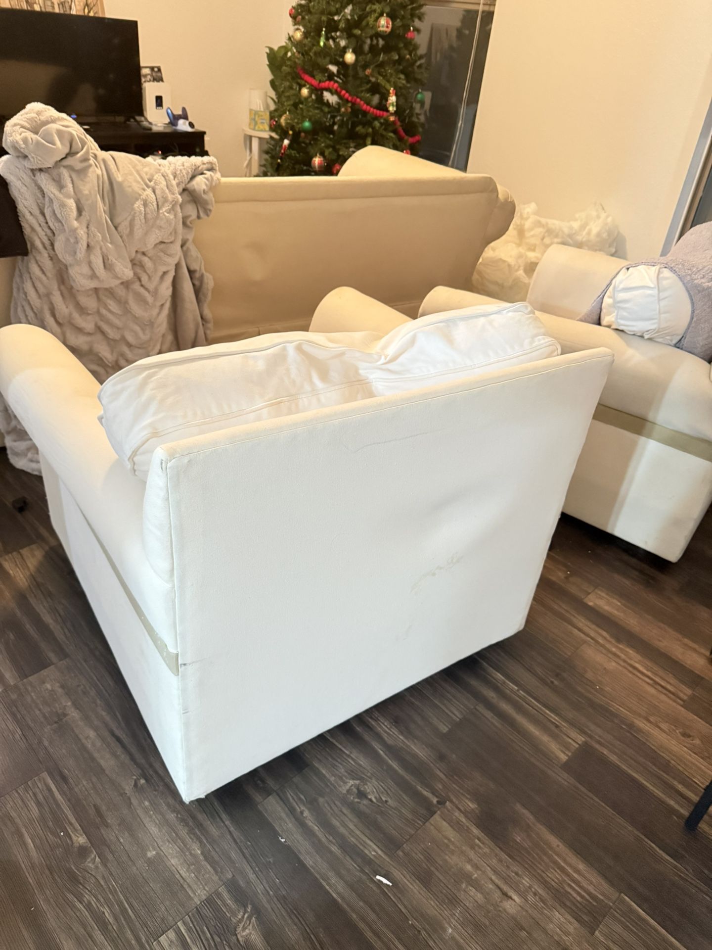 Two crate and barrel chair, missing the covers. Very sturdy and heavy, only had for one year. Will not deliver and must be able to take down from the third floor.