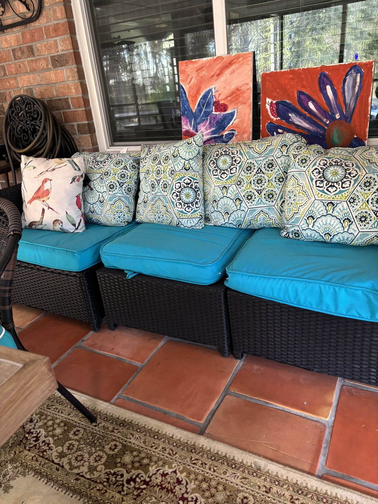 Three piece patio chair with cushions and pillows $150