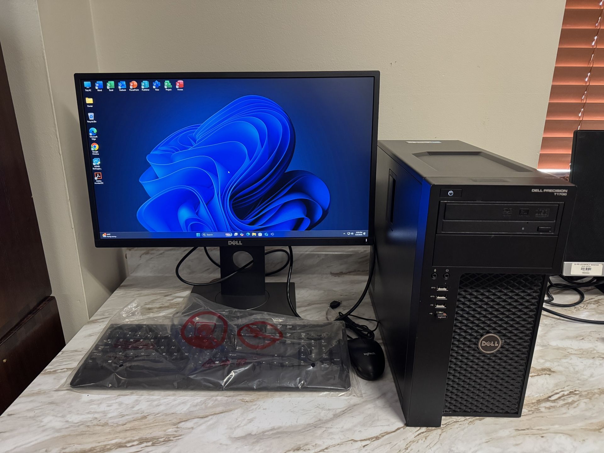 Excellent working and cosmetic conditions, *Included 24" Dell P24 Series FHD monitor, keyboard and mouse set Dell Precision T1700 Workstation Desktop PC Dell Professional Series 24" P24 Full HD Monitor with USB Hub, DP. VGA ports Intel Xeon E3-1220v3 4 Cores 3.10GHz 512GB SSD Storage (additional storge upgrades available) 32GB ECC Ram NVIDIA Quadro 600 2GB GDDR5 Professional GPU (1 x Display, 1 x DVI) Windows 11 Pro x64 24H2 OS DVD R/RW optical drive 1 x Gigabit Ethernet MS Office 2021 Pro Plus, Eset Endpoint AV 2025, Acrobat Pro DC Included power cable, Keyboard, Mouse 4 x USB 3.0, 6 x USB 2.0, PS/2, 1 x Gigabit Ethernet, 2 x Display Port, VGA, Serial, Audio ports