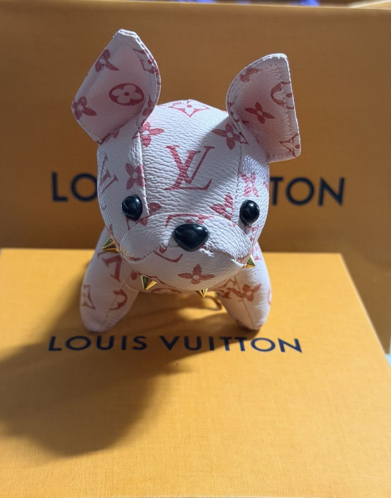 I have two LV Frenchie Monogram keychains available one in pink and the other is tan sorry no dust bag or box available send me an offer perfect for Valentine’s Day or Birthday gift.