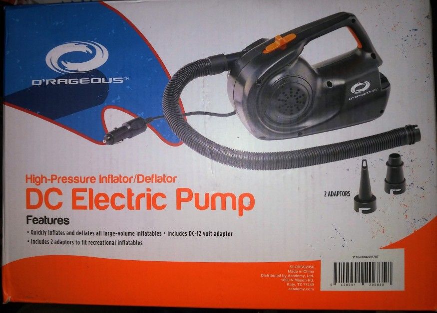 Keep your river tubes and air mattresses fully inflated with the O'Rageous High-Pressure Inflator/Deflator 12 v DC Electric Pump. Boasting a high-pressure design that inflates and deflates items quickly, this pump is small enough to allow easy portability, and a nonkink hose and a variety of attachments are included for use with a range of valve types. Features and Benefits 12-volt plug Small size allows easy portability Designed to inflate and deflate small- and large-volume inflatables Durable plastic construction with metal components Nonkink hose and various attachments are included for versatile use Specifications Product width (in.): 6.8 Product height (in.): 9.6 Product depth (in.): 5.1 What's in the Box Multiple attachments Nonkink hose O'Rageous High-Pressure Inflator/Deflator 12 v DC Electric Pump