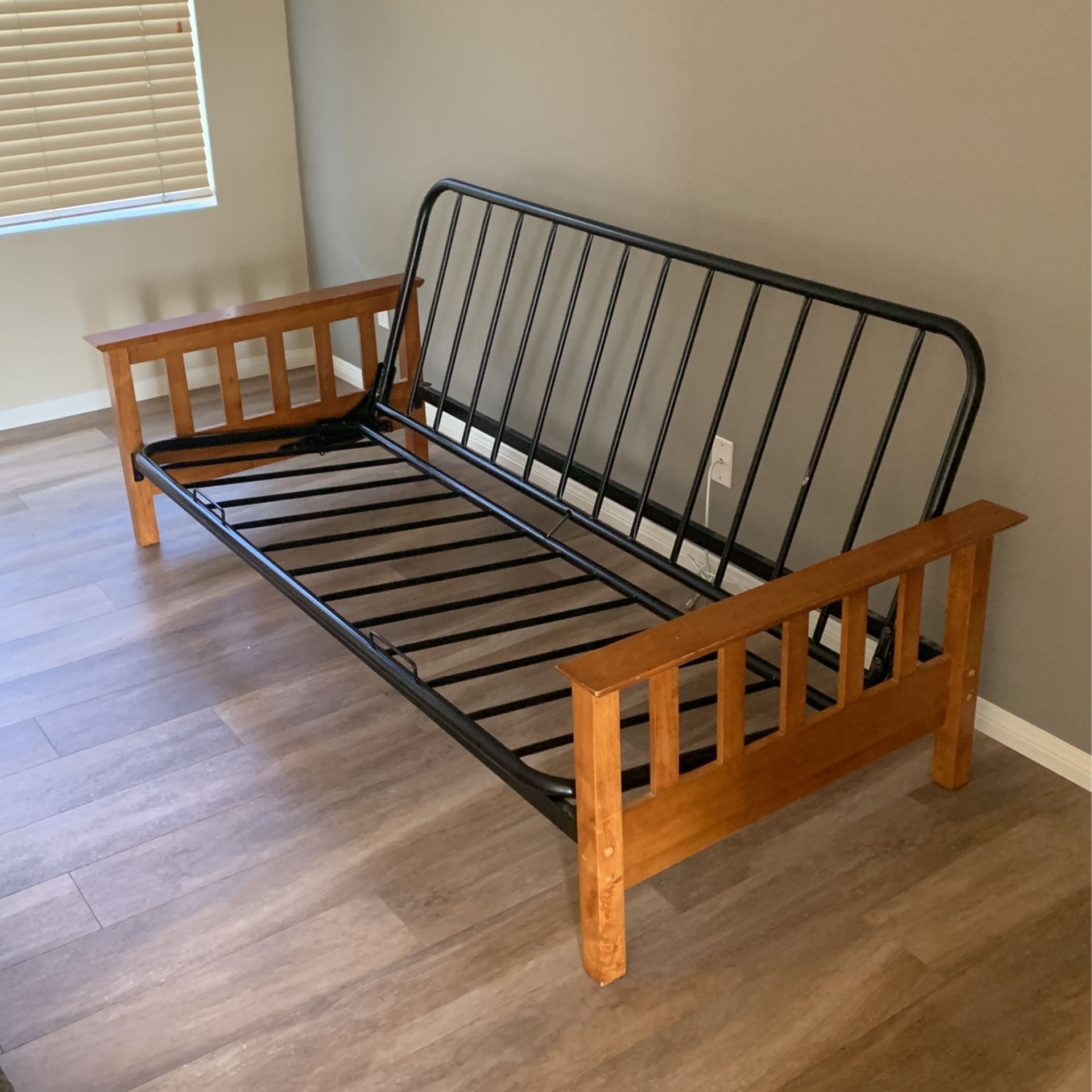 About 6 feet long about 2.5 feet wide. Nice futon. Want to use space for something else so getting rid of it.