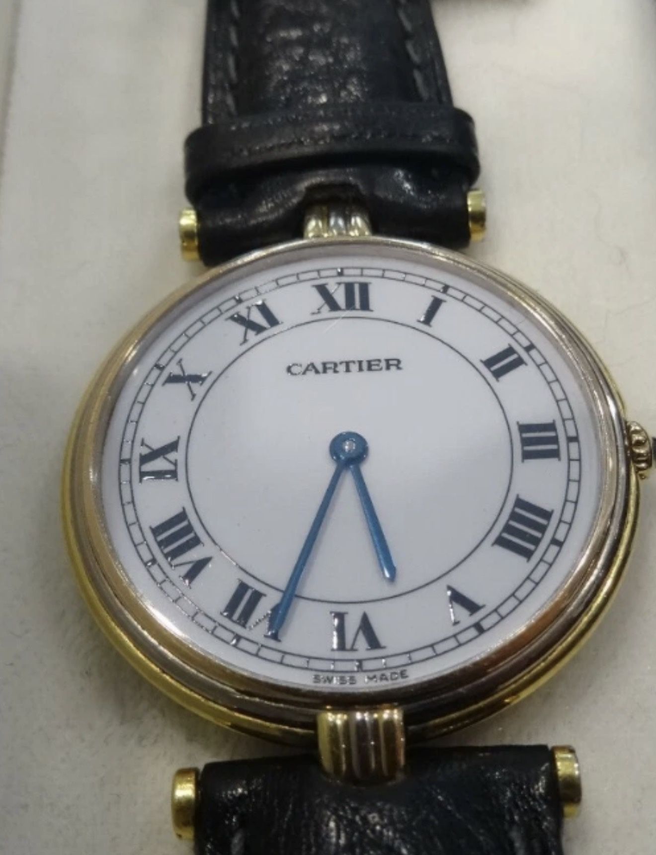 Gorgeous solid gold Cartier Vendome. 30mm on a brand new leather strap. Solid deal on a neo vintage Cartier