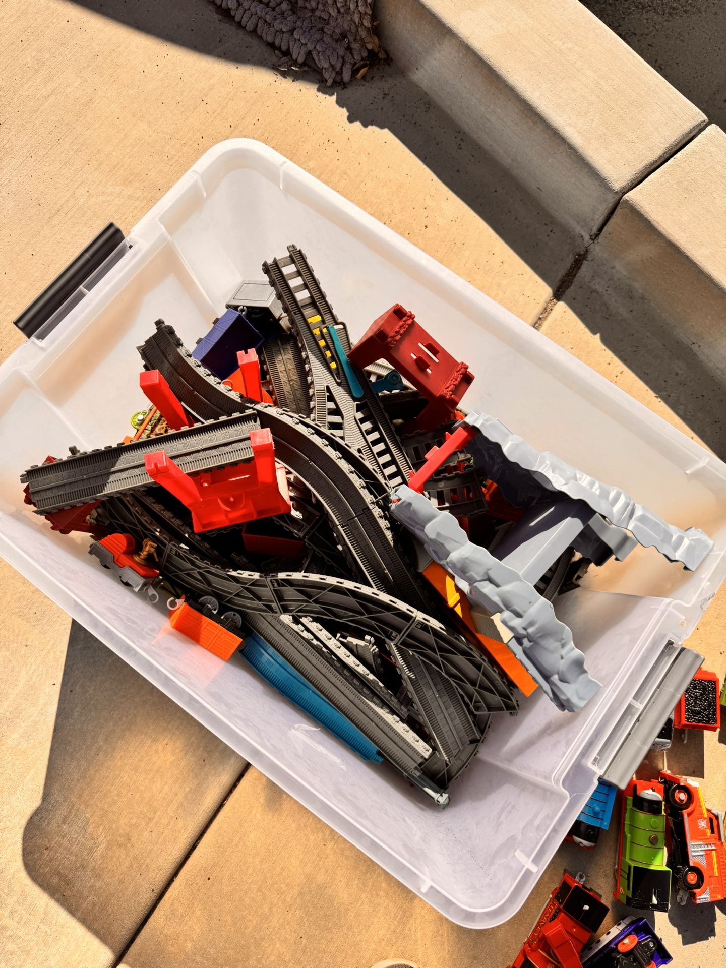 Large bin of Thomas the train set. Few different sets combined. Tracks, runner, bridges, trains, etc. my kid outgrew it. Good condition.