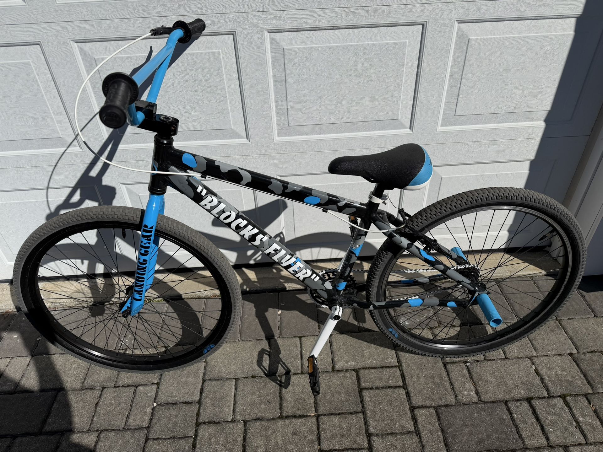 SE BlocksFlyer 26 inch BMX Bike Blue/Grey Camo New grips New chain New Landing Gear Decals Excellent physical and working condition Pickup Only St. James, NY CASH ONLY NO TRADES NO HOLDS