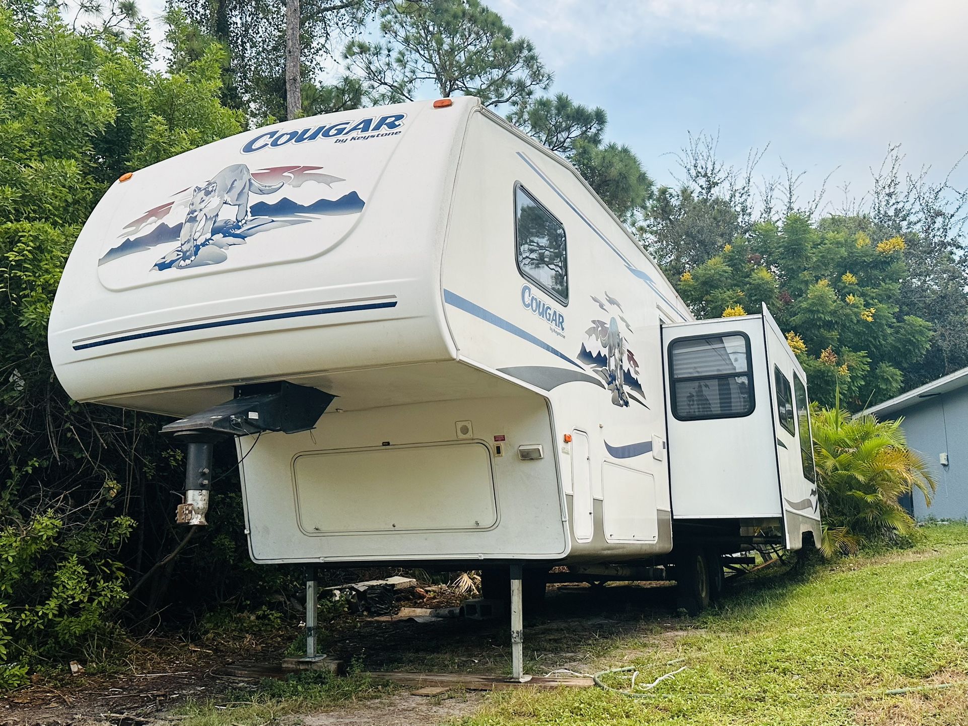 cougar rv in good condition these rv has a new refigerator and the A/c whorls perfect no leaks no dounspout any were no soft floor for more info text me has 2 bed one bad
