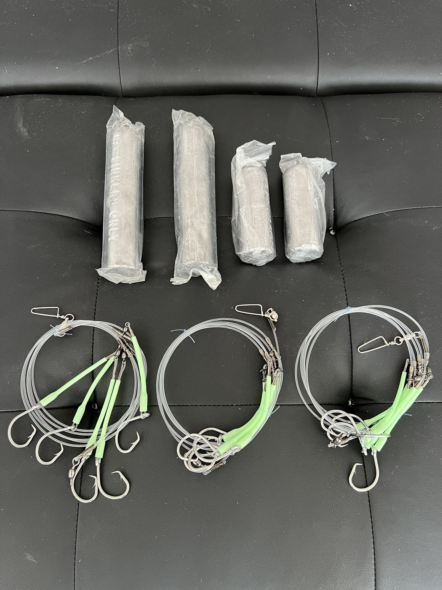 USA made 3 Deep drop fishing rigs, 5 circle white hooks and 2x5lb, 2x3lb deep drop sticks package