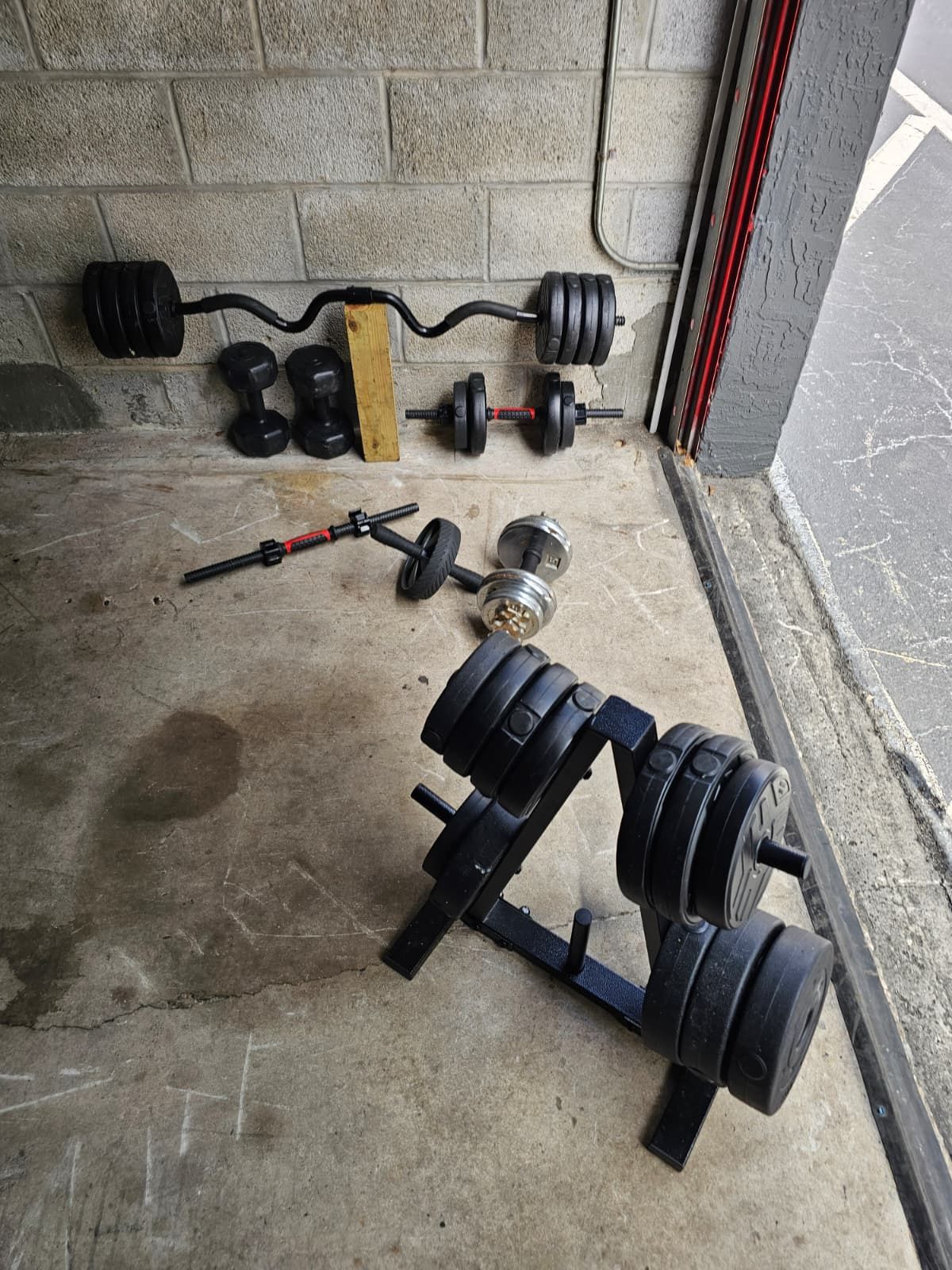 Z Curl Bar+Weights 90 Pounds + Handless Dumbbells + Tree Rack. delivery fee + Homeowner 33033