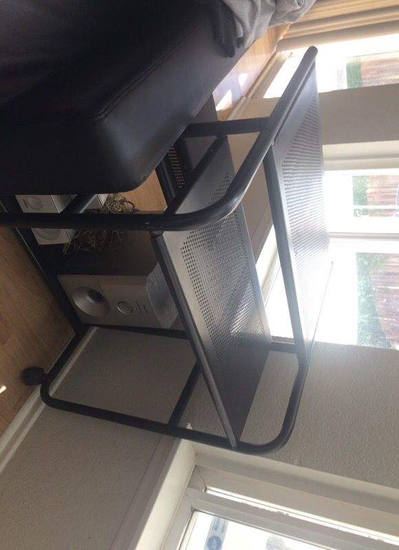Computer desk very good condition. It can fit dual monitor up to 19", Has 4 wheels working fine, when you put your PC under the desk it easily to cool down the PC when you have fan under on your Chassis . Just upgraded to bigger L Desk Speaker is not included.