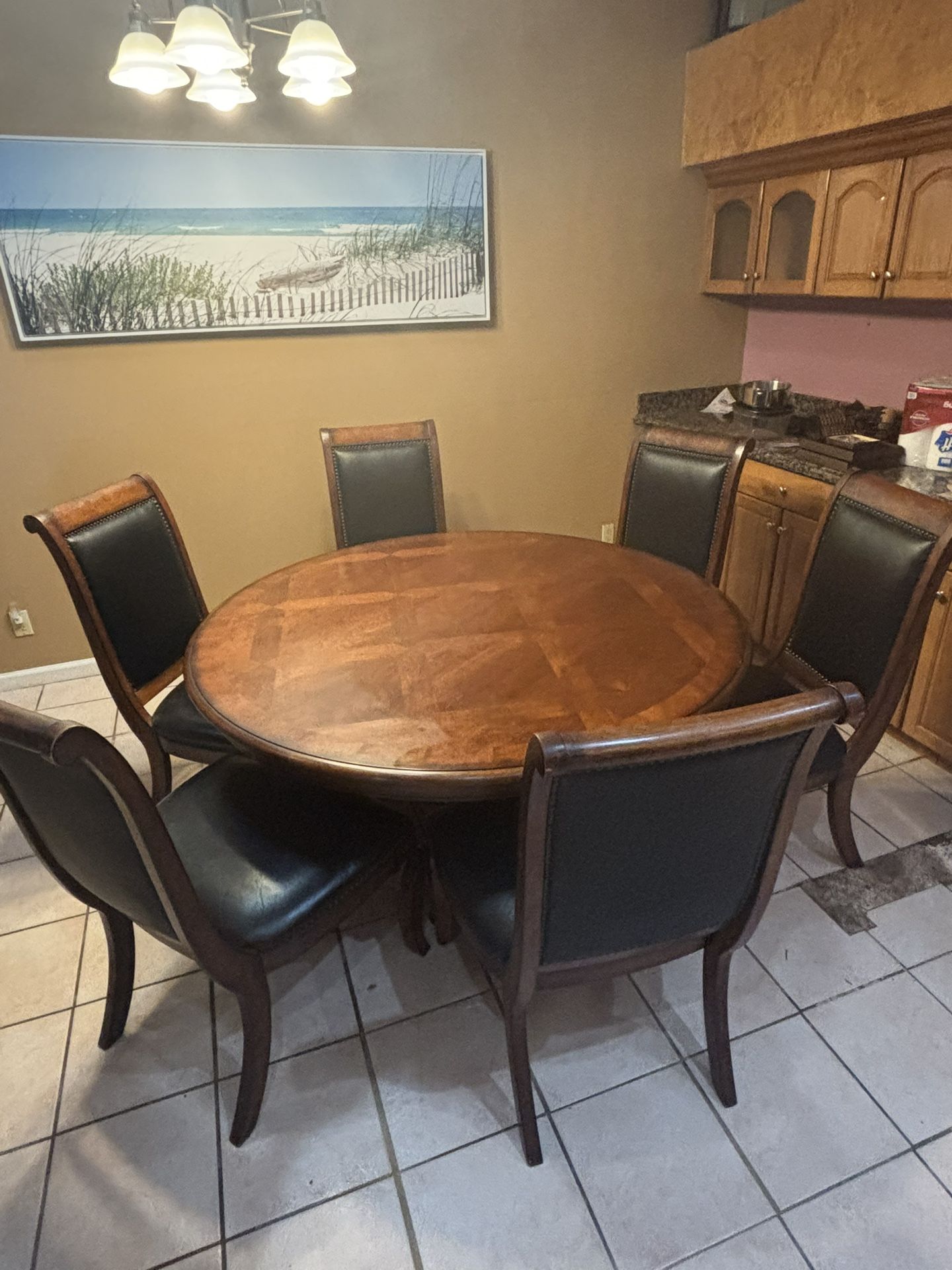 60” diameter wood dining table and 6 chairs. $1,000 OBO