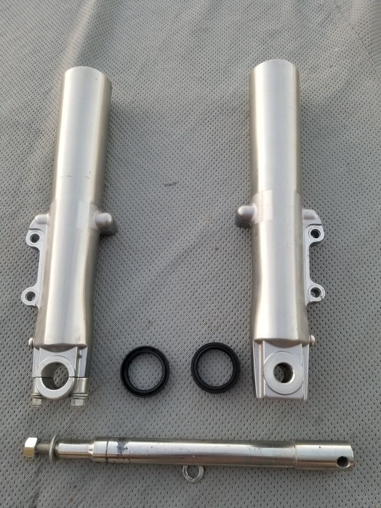 Harley Showa 41mm bottom legs and 13 " long 1 " diameter Axle... In good condition..