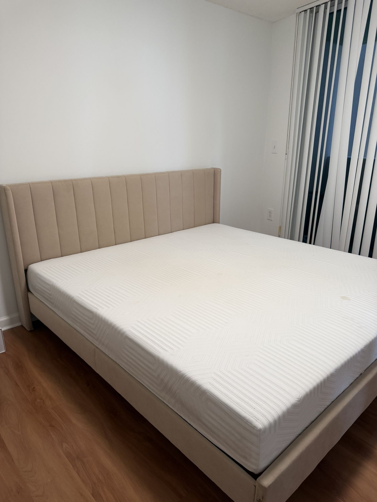 King Bed Frame & Mattress – Like New (Mattress Firm) Selling a king-size bed frame and mattress purchased from Mattress Firm. Both are in excellent, like-new condition and have been very lightly used in a clean, smoke-free home. The mattress is super comfortable, supportive, and well-maintained—no odors. The bed frame is sturdy, modern, and easy to assemble, providing great support and stability.