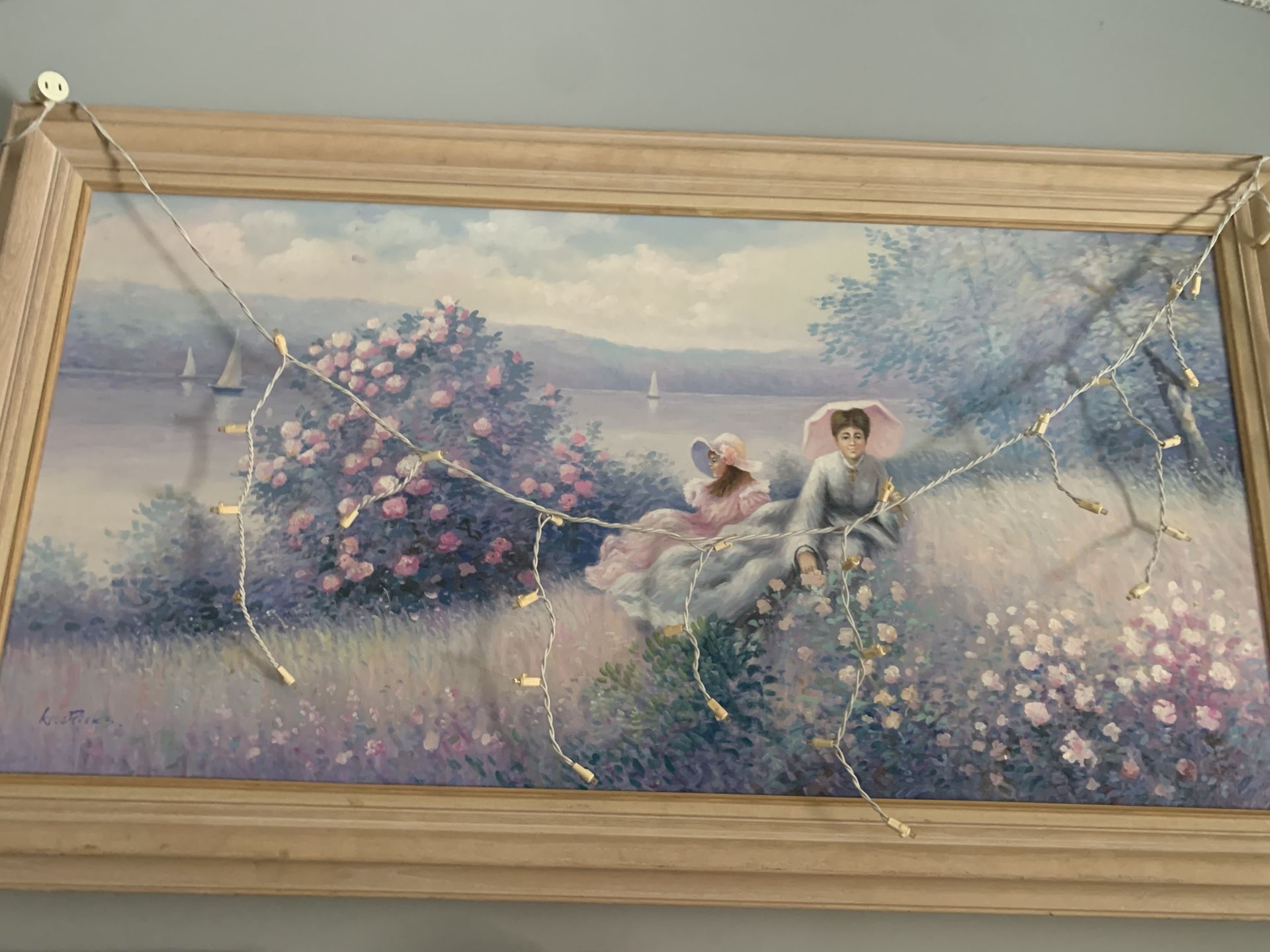 Hand painted and limited paintings were made! 2 ladies I’m a flower field sitting by a lake!