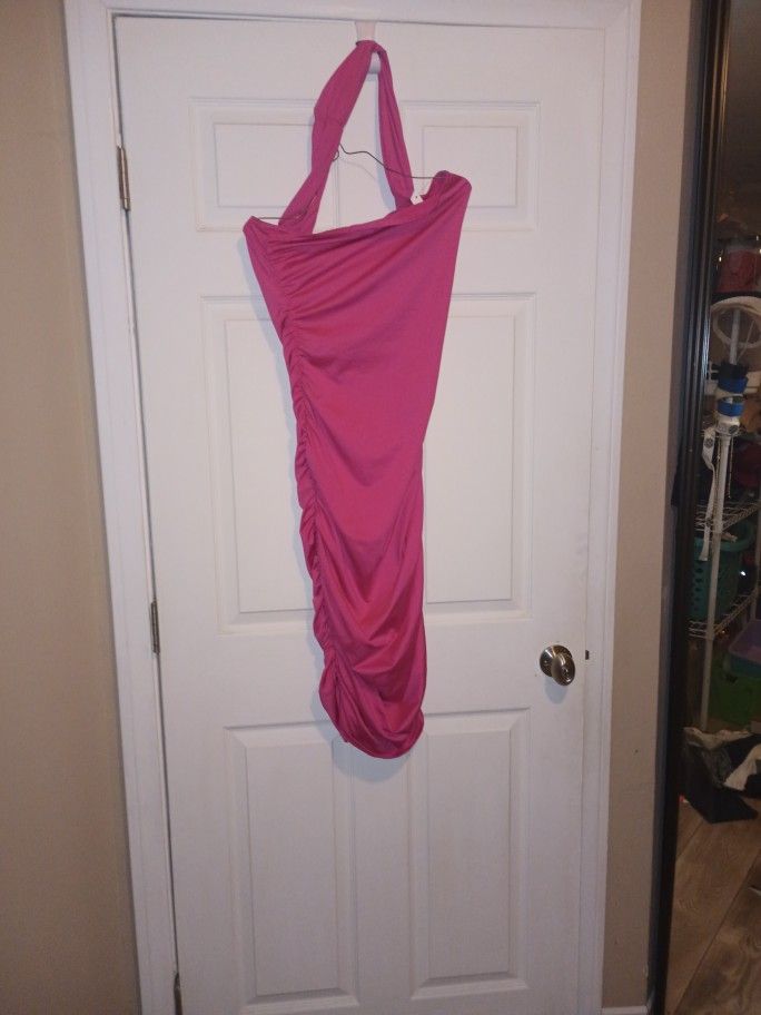 Women's dress, soft, stretchy, hot pink, size large scrunched. Brand new