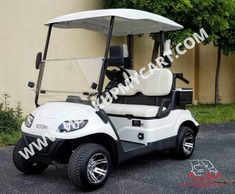 Safety Convenience and Electrical Insulated Wire Harness DOT Approved Lighting LED Lighting Batteries Battery Charger Interior Features Digital Speedometer & Odometer Digital Battery Gauge Discover the ICON Electric Vehicles 2-seater golf cart, a top-quality product with a 3-year limited manufacturer's warranty. The ICON i20 Golf Cart comes fully loaded. You can take comfort in the fact that when you purchase an ICON Electric Vehicle you are getting a top quality product. ICON EV's are built using 450 amp controllers and 48 Volt AC 5kw motors. Standard with all ICON EV models are onboard charger LED head lights, brake lights, daytime running lights, night time running lights & brights, turn signals, horn, tires, seat belts, side view mirrors, digital gauges and disc brakes all around. Don't wait any longer to own the ultimate golf cart experience. Contact our sales team now online or at (contact info removed). to get all the details about the ICON i20 Golf Cart.