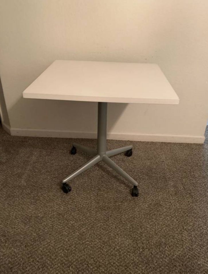 Table is in excellent condition. Commercial grade heavy duty. Roll great on 4 casters Table height 29” 30” x 30” square model: ALM30SQR Delivery available in greater SF Bay / Sac area for $20-$50 depending on distance and bridge tolls.