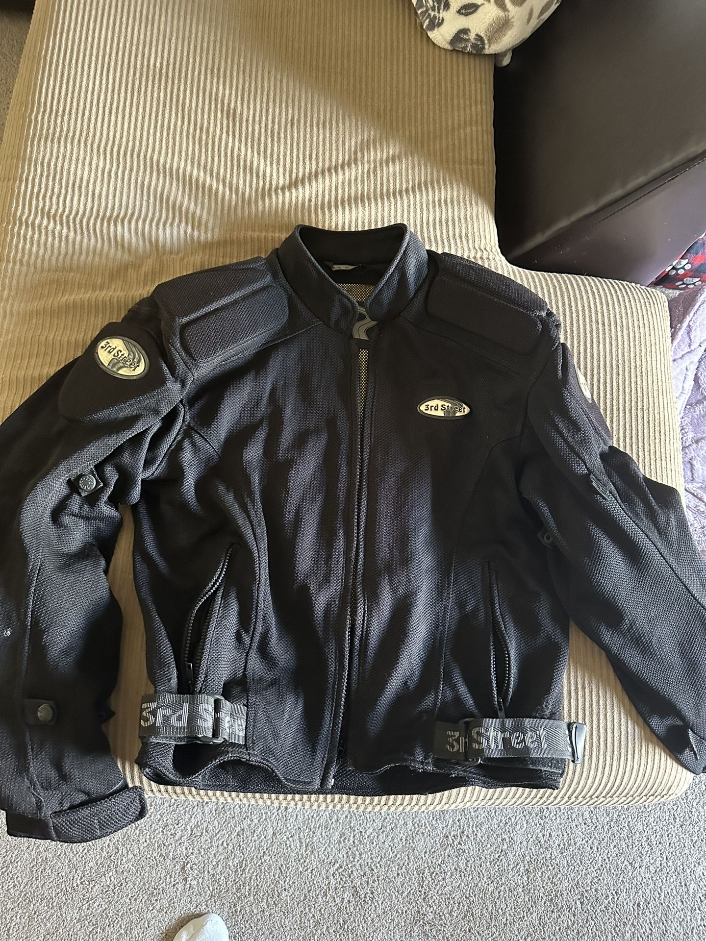 Motorcycle Jacket (3rd street) Size 44. It has padding and on the lighter side for summer riding. $40