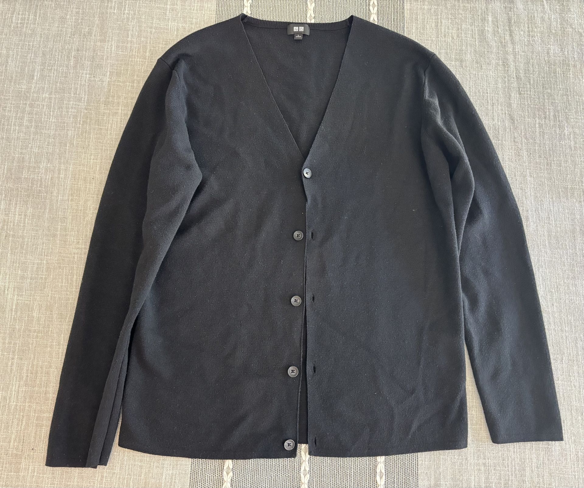 Uniqlo Cardigan Mens Large Black Button Front Lightweight Sweater Minimalist