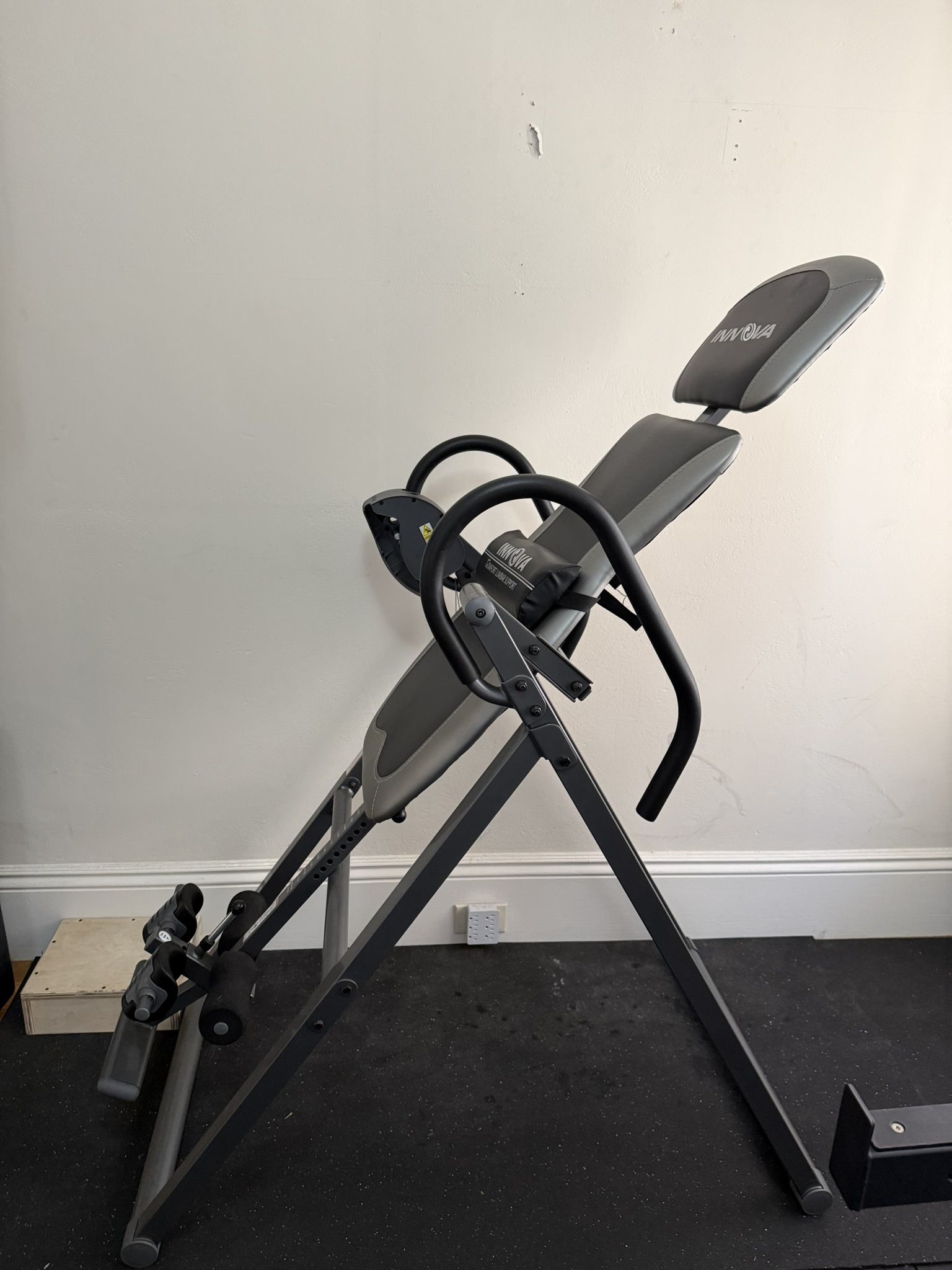 Innova brand inversion table. It’s in great shape and has been super helpful for bouts of back pain. Selling because I’m moving. It’ll fit anyone from 4’10” to 6’6” and has lots of adjustments to tinker with.