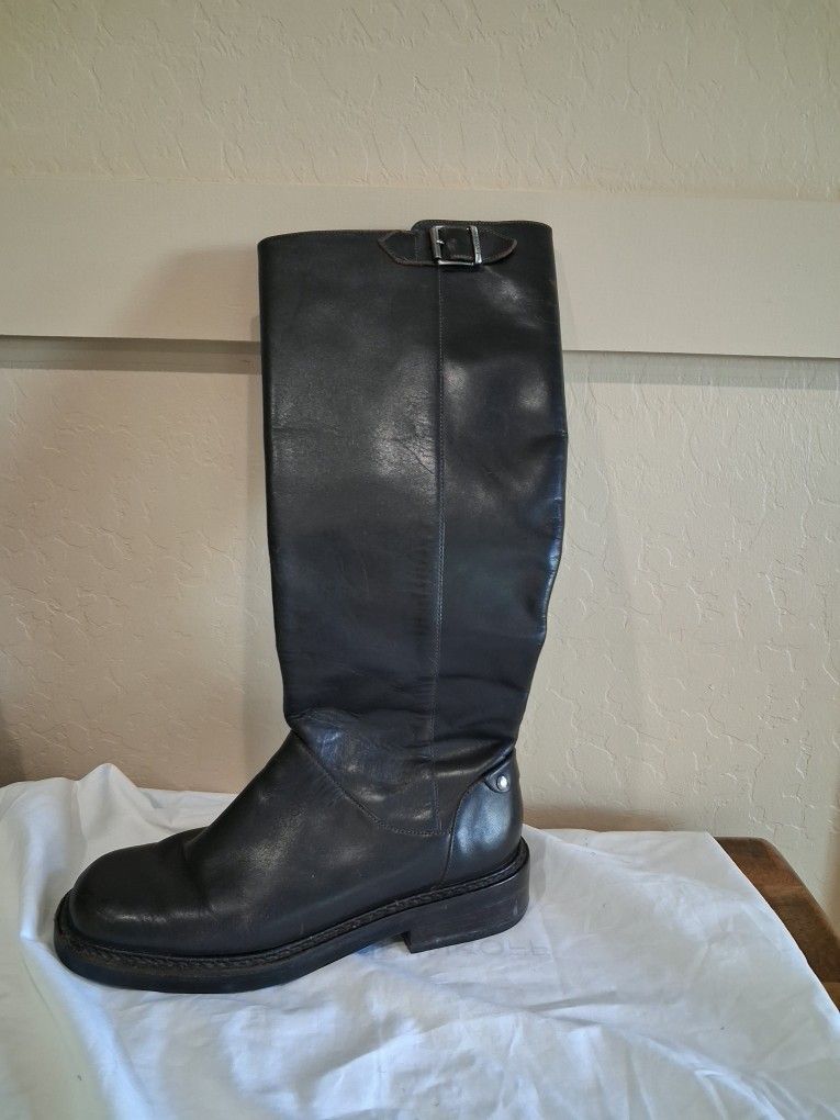 Good shape, comfortable riding boots with rubber sole. Fits calves