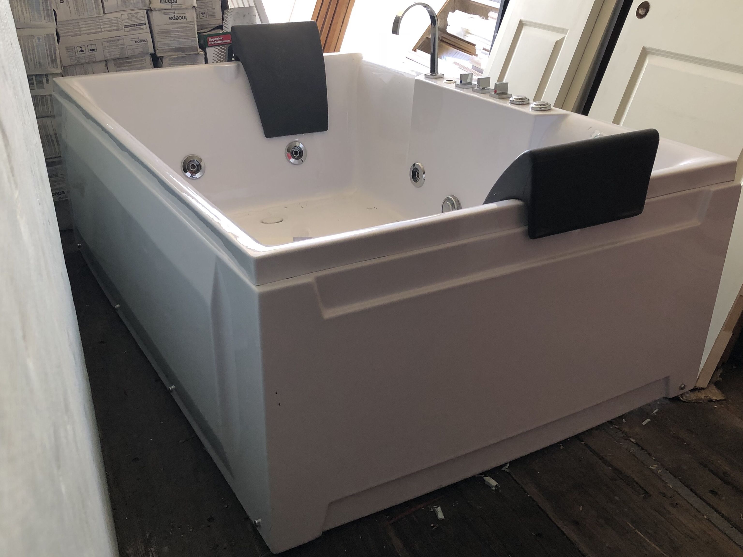 New whirlpool tub. Freestanding. Finished on 3 sides. 48”x72” 24” high