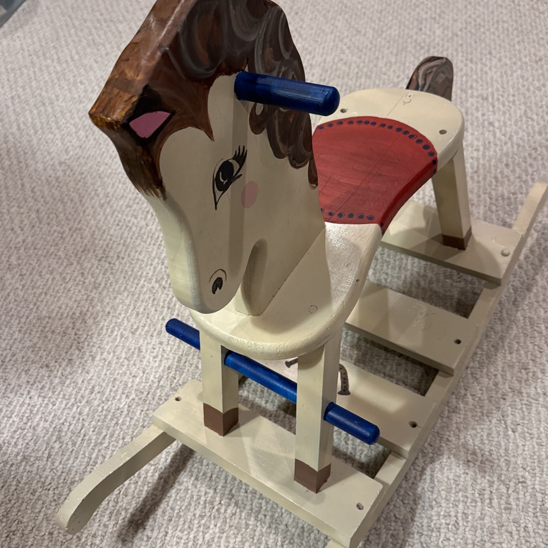 Vintage Hand, Painted Toddler, Wooden Rocking Horse
