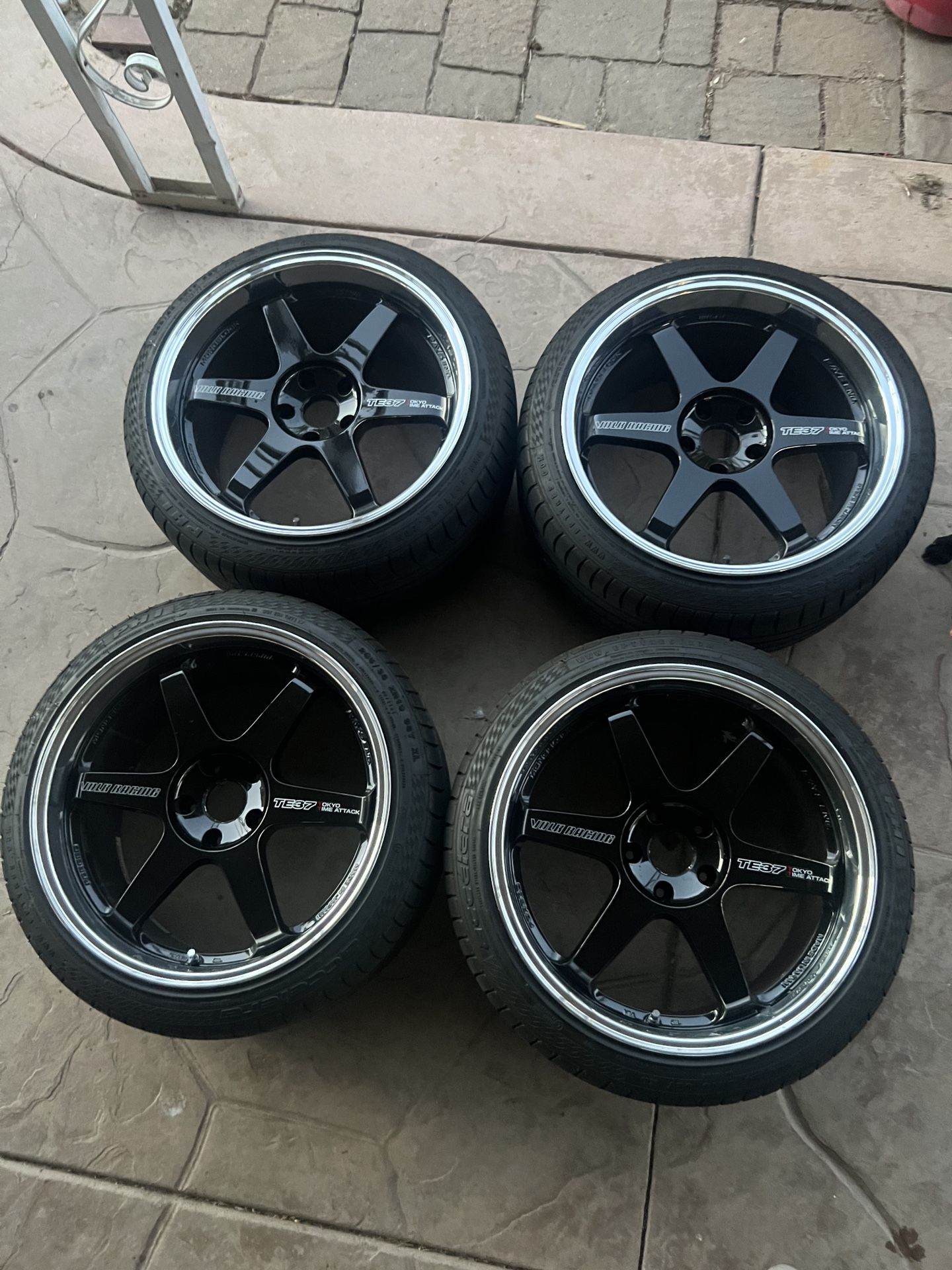 I’m selling my like new Super RARE forged volks TTA TE37 in black with fully polish lips comes with new OG center caps wheel specs 19x10.5 +32 square 5x114.3 with like new tires only like 700 miles on them 265 35 19