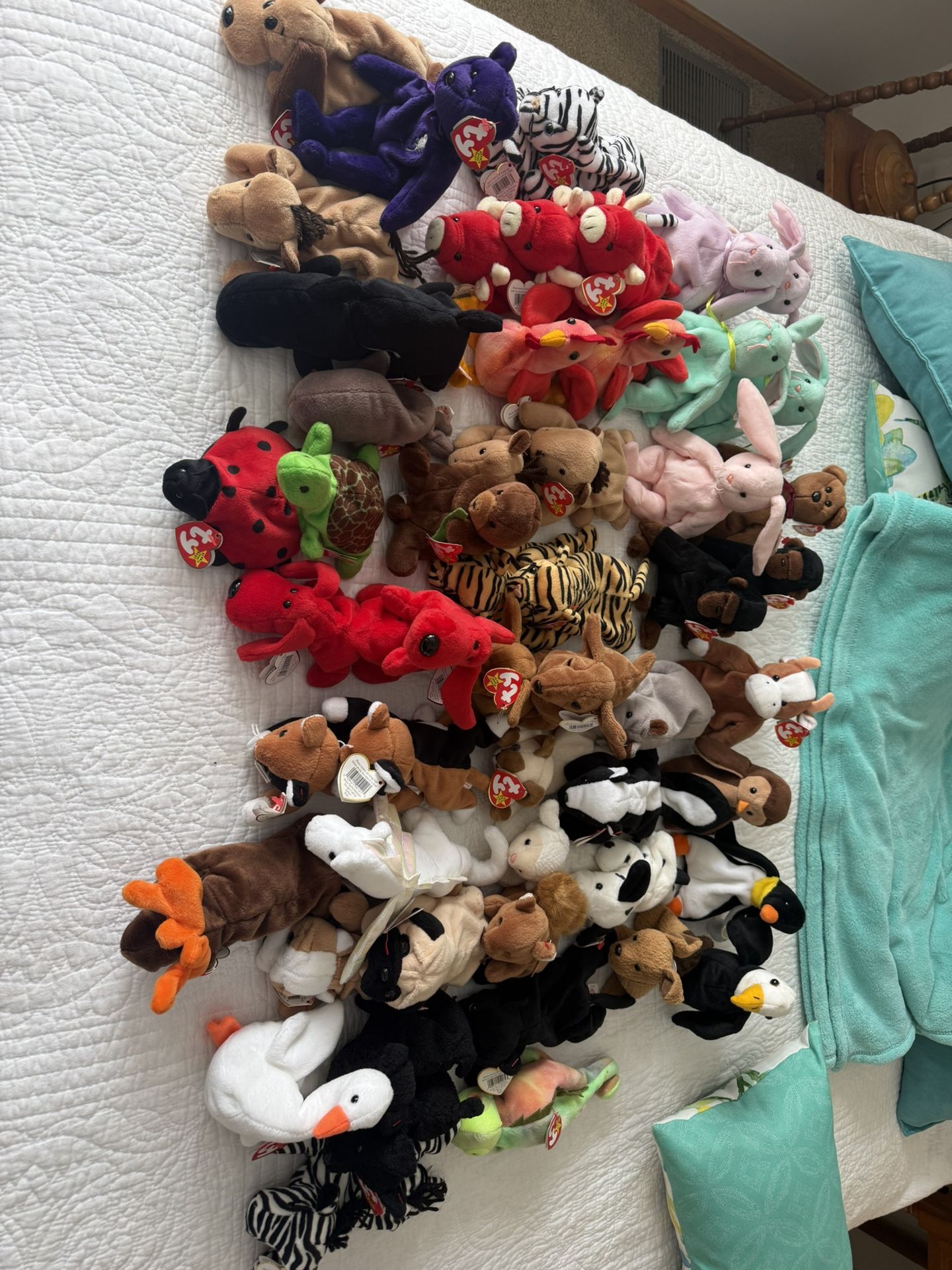 56- 4th gen tag, 26 - 5th gen tag, 12 - 6th gen tag, 6 - 8th gen tag, 4- 9th gen tag, 2- 10th gen tag, 10- teenie beanie, 75 untagged. 50/50 on the tag quality (creases)