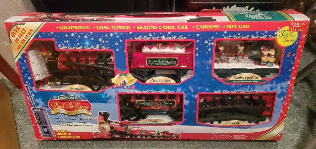 Train Set is gently used and includes all 35 pieces and more than 20 feet of track. Can be controlled with or without a radio transmitter. Batteries not included. Brand New, never used Musical Light-Up Snow Globe is approximately 2 feet in diameter, plays 10 holiday songs, and continuously blows snow. Plug in AC adapter included. Delivery available for an additional $50, within 12 miles, AFTER paid in full.